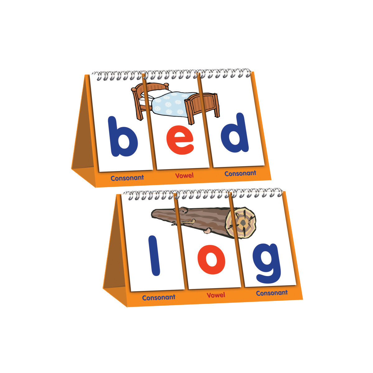 CVC Flips is an early flip stand for teaching the spellings of consonant-vowel-consonant words. Images form when correct spellings are made that relate to the word. Double-sided with different examples on each side.