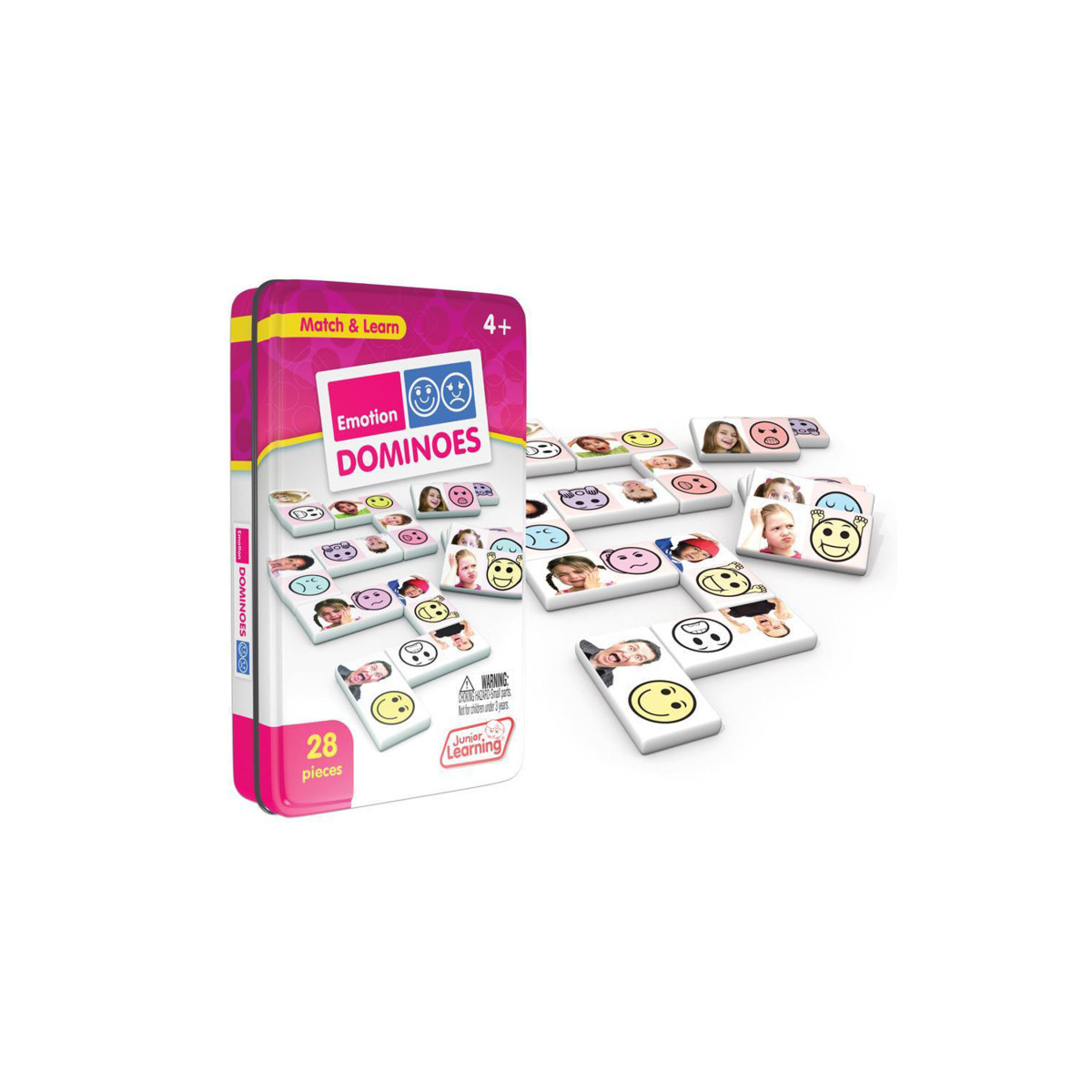 Emotions dominoes include a 28 piece set on thick plastic dominoes. Dominoes come in a collectors tin for storage. Children will love the feel of real dominoes as they complete the emotions matching game. Ages 4+.