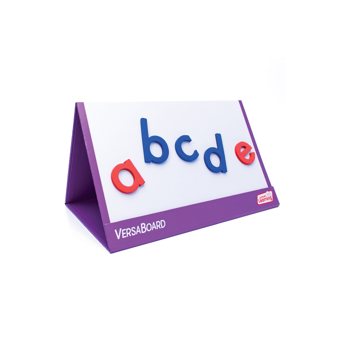 The Versaboard is an ingenious magnetic board that converts from a flat board into a tent-shaped board. The board has a write and wipe surface that can be used with a whiteboard marker or for placing any magnetic resources. The large Versaboard is able to accommodate Giant Alphabet and Giant Rainbow Phonics (sold separately).