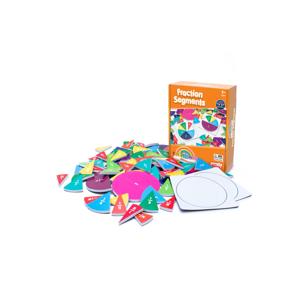 Help your child better understand how fractions work with this set of magnetic fraction Segments! Fraction Segments can help teach children fraction concepts such as parts to a whole, equivalents and comparisons. Each fraction is a segment of a circle to visually show how fractions can describe part of a group. Each fraction segment is a different size and is color-coded to represent how different fractions can make up a whole circle. Fraction Segments can be used on any magnetic surface. Contains 78 pieces. Ages 5+