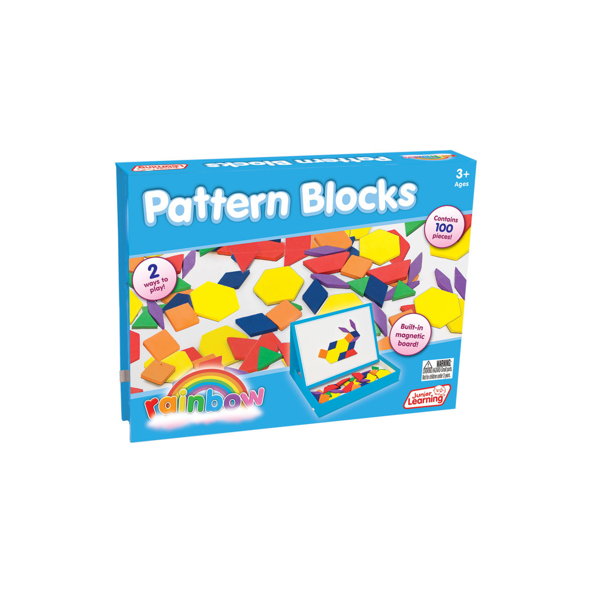These brightly colored foam magnetic pattern blocks are ideal for reinforcing symmetry, geometry, visual perception, shape recognition, sorting, early problem-solving skills and fractions. Using standard geometric shapes, these blocks can be used across all age ranges by simply modifying the activity for a child. Comes in a handy storage box with built in magnetic board, 8 double sided activities cards and 100 pattern block manipulative.
