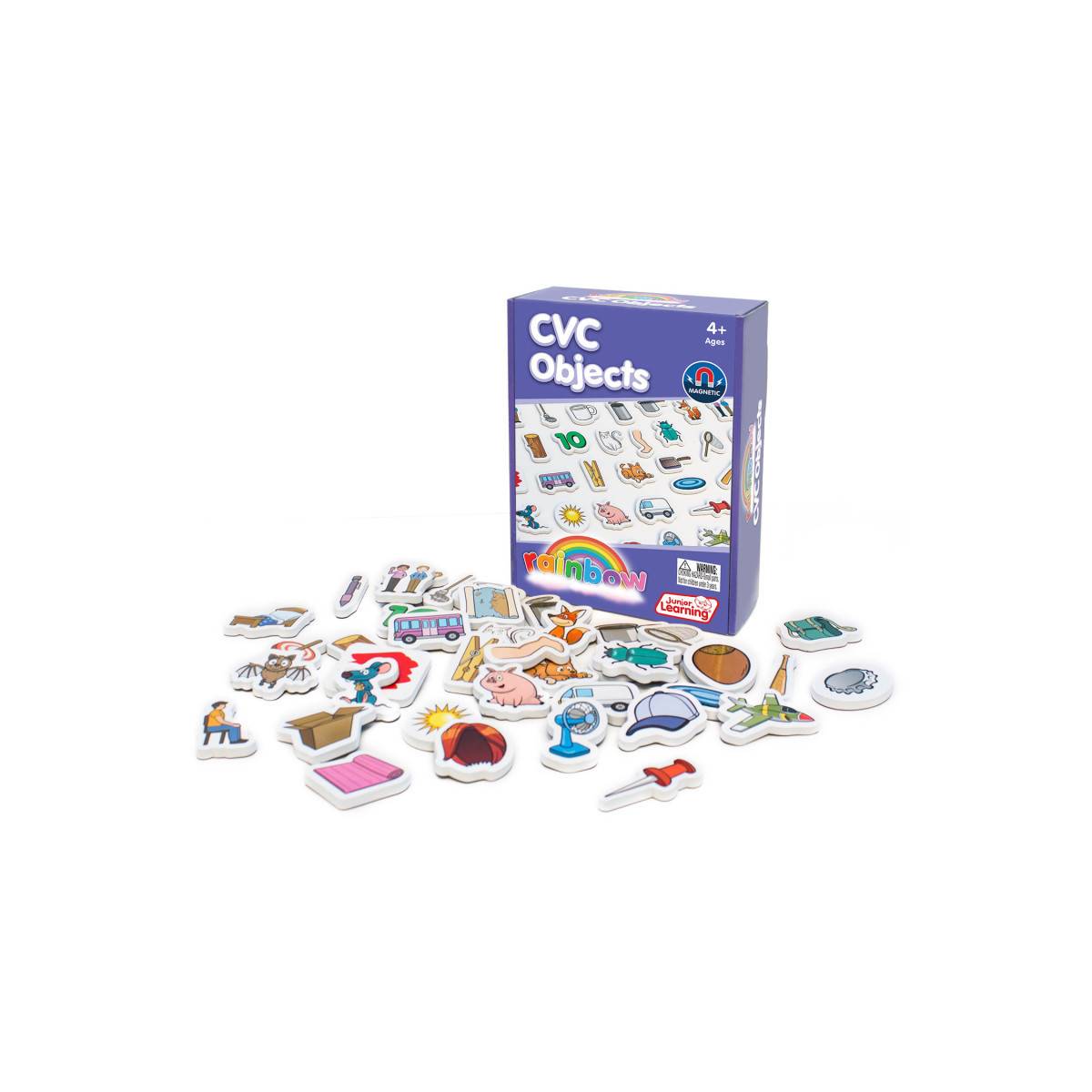 Rainbow CVC Objects are a set of 40 magnetic foam CVC objects in a box. Begin to teach CVCs in an interactive, hands-on and fun way as children identify objects and sound out their consonant, vowel, consonants, such as bat, fox and pig.