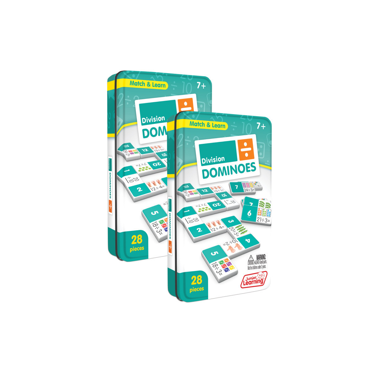 Sold as a pack of 2 sets, each 28-piece set of dominoes teaches division