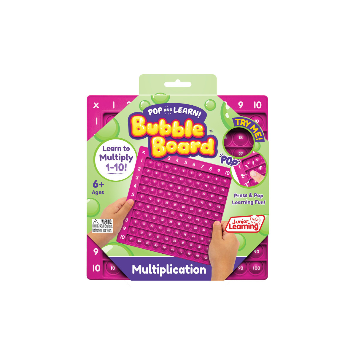 Learn multiplication facts with this durable "pop and learn" multiplication board. Factors 1 to 10 are represented on both the vertical and horizontal axes with the correct product presented in the corresponding bubble. Pop bubbles as you practice and solve the equation. Bubbles on the reserve side are blank and can be used for creating visual multiplication arrays.