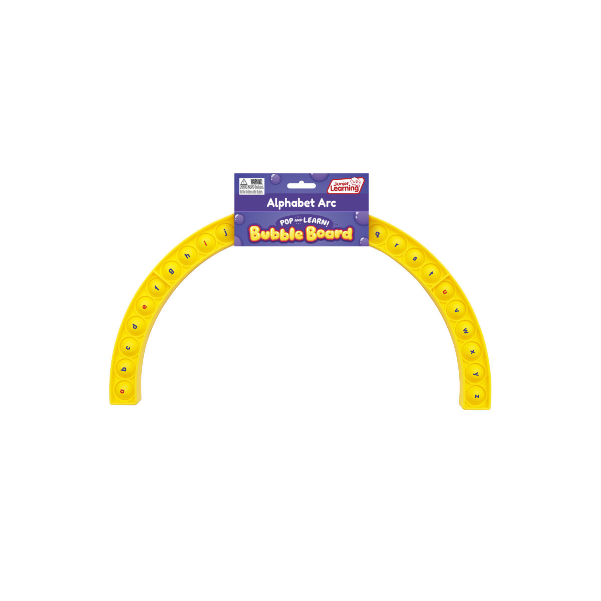 Learn the sequence and pattern of the alphabet. Pop letter bubbles to spell out words and play alphabet games. Includes one double-sided Bubble Board, with lowercase on the front side and uppercase on the reverse.