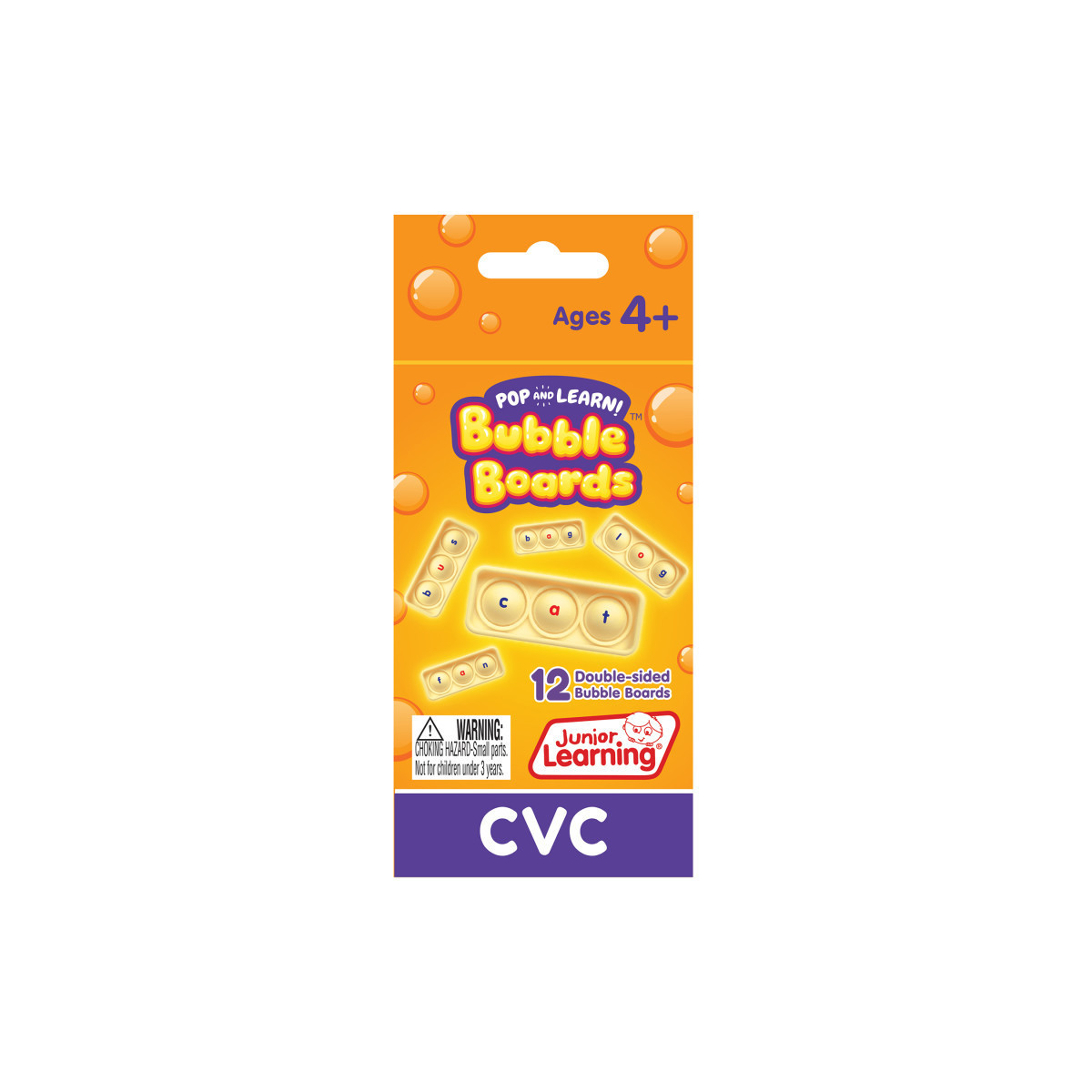Identify beginning, middle and final sounds with these CVC (consonant vowel consonant) Bubble Boards. Includes 24 simple CVC words on 12 double-sided Bubble Boards. Develops phonemic awareness, decoding, reading and spelling skills.