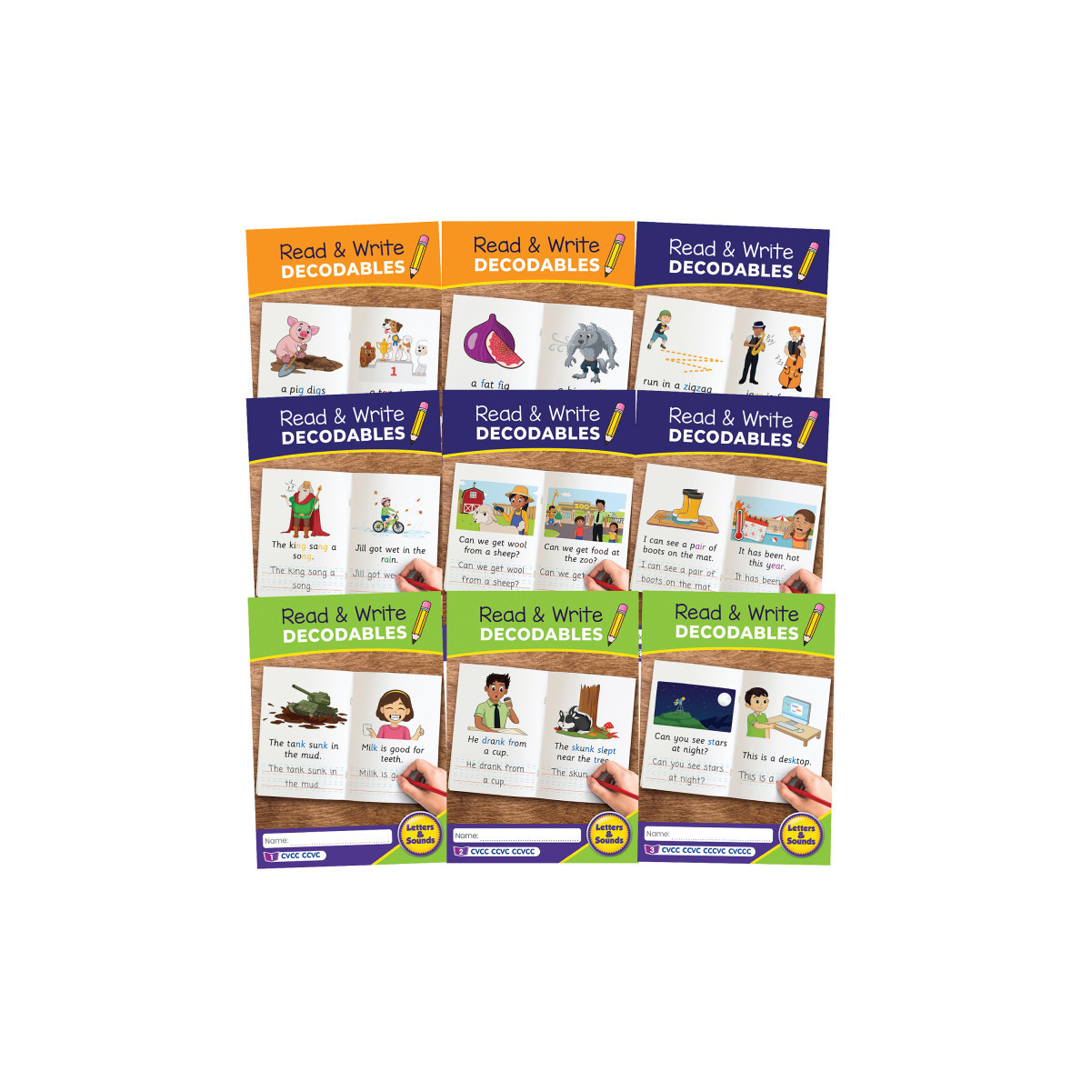 This set of Read & Write Decodables provides children with an opportunity to apply their handwriting skills alongside their newly developing phonics skills. The set has been specifically prepared for the Reception year and covers phases 2-4. Each page represents a target letter-sound from the respective daily lesson and has been highlighted through color-coding. Handwriting lines guide children's writing for the formation of both ascenders and descenders.