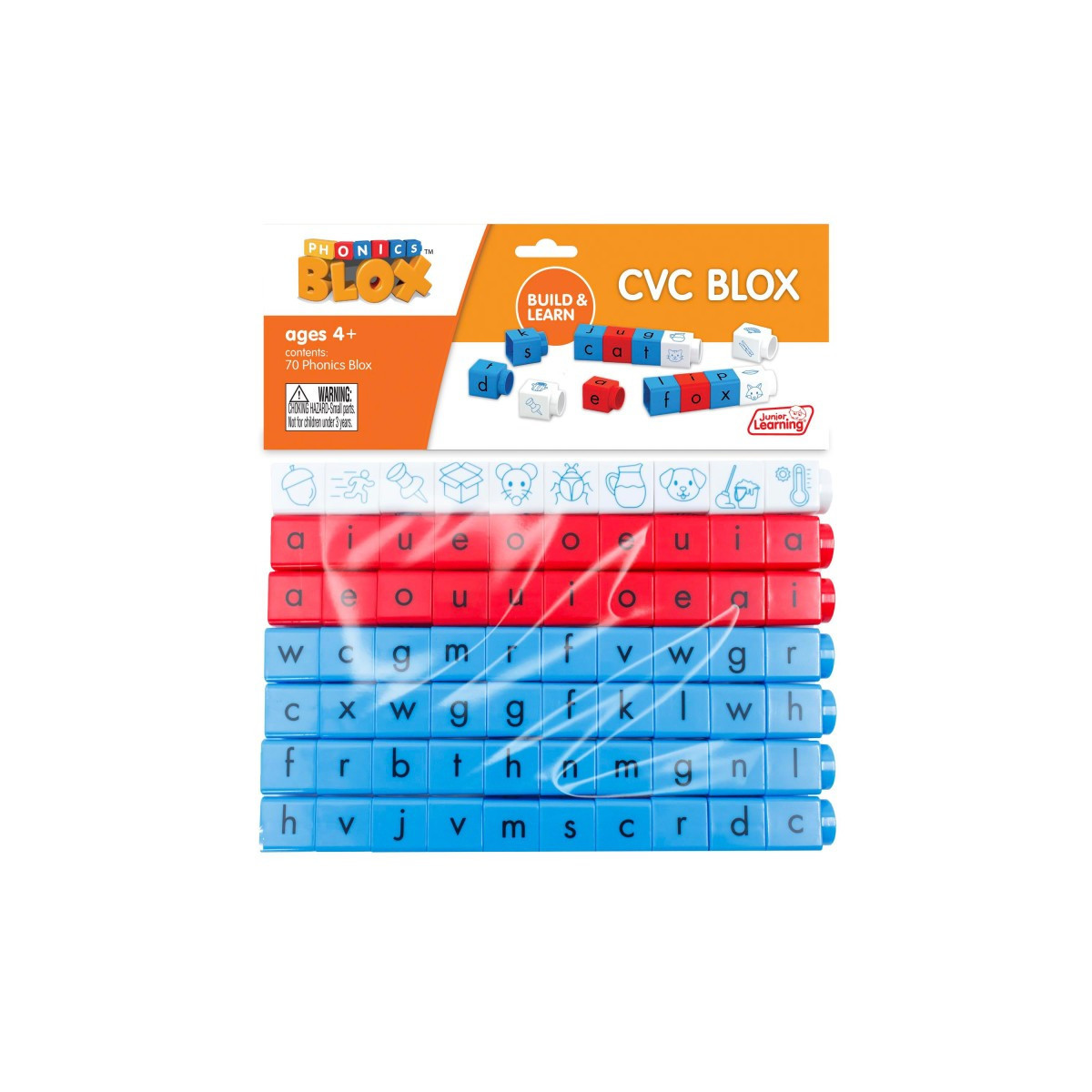 CVC Blox from Phonics Blox are color-coded and turnable word building cubes. This set includes 40 consonants and 20 short vowel blox. The turnability supports the development of phonemic awareness as students can twist a letter around to change the sound and meaning of the word (for example: change hat to hot to hit...). 10 picture blox are also included to support students with consonant vowel consonant words.