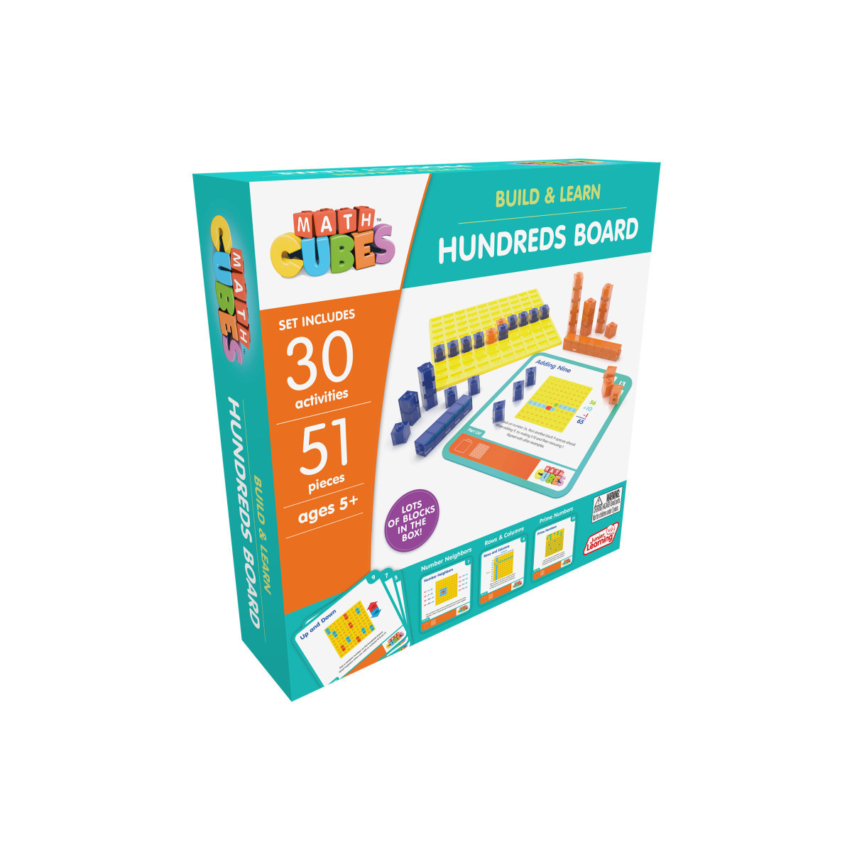 Comprehensive 51-piece set includes a Hundreds Board and 50 Mathcubes for a multi-sensory learning experience.