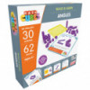 Discover the nuances of angles with the Mathcubes - Angles set, tailored for children aged 6 and above. This 62-piece kit includes a Geoboard, 10 Hinges, 30 Multicubes, a Protractor, and 20 rubber bands. Accompanying these components are 15 dual-sided activity cards, providing 30 guided tasks aimed at mastering angle concepts.