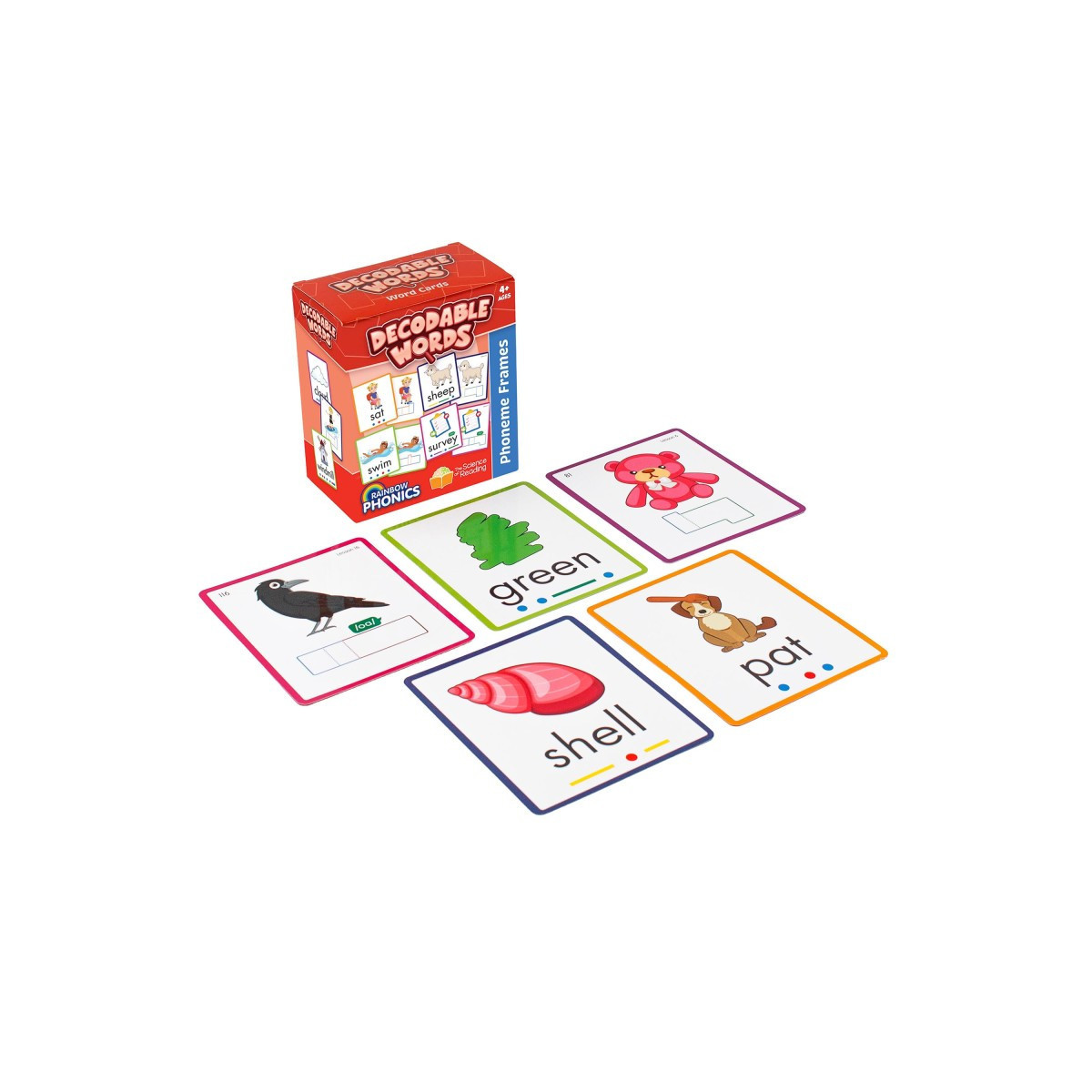 The Rainbow Phonics Decodable Word pack contains 160 cards for teaching decoding and spelling words across the Rainbow