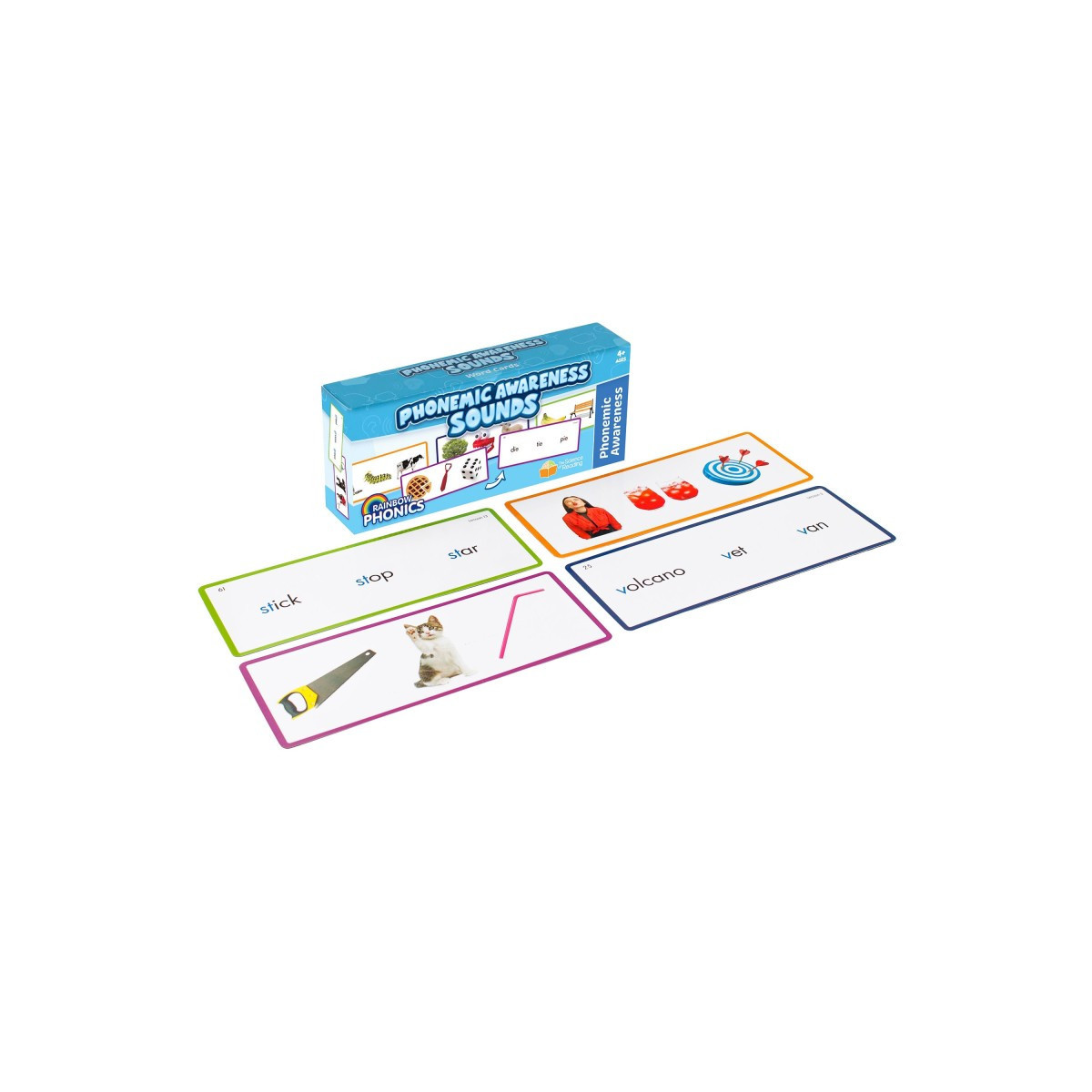 The Rainbow Phonics Phonemic Awareness Sounds pack contains 101 cards for teaching the various phonemes that make up the English language.