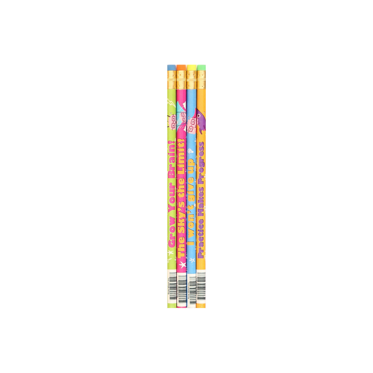 Growth Mindset Pencils. Assorted designs. Set of 144 pencils. Non-smudging lead. PMA certified and non-toxic. Has a latex free eraser. #2 writing core.