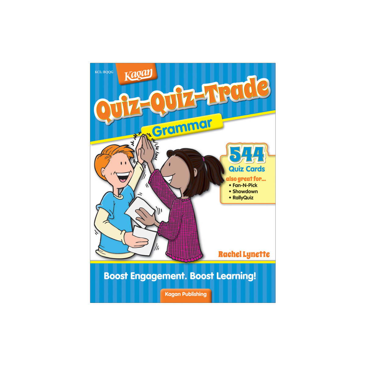 Quiz-Quiz-Trade is a student favorite! This Kagan Structure turns need-to-know curriculum into a fun and interactive quizzing game. To play, every student receives a quiz card relating to the topic. Students then pair up with a classmate. Using their cards, they quiz each other. After coaching or praising, they trade cards and set off to quiz a new classmate with their new card. The repeated practice boosts retention of the content. Memorizing important information and concepts has never been so fun! Each book is loaded with card sets on a variety of topics. Each card set includes enough ready-to-copy cards for your entire class to play. 216 pages.