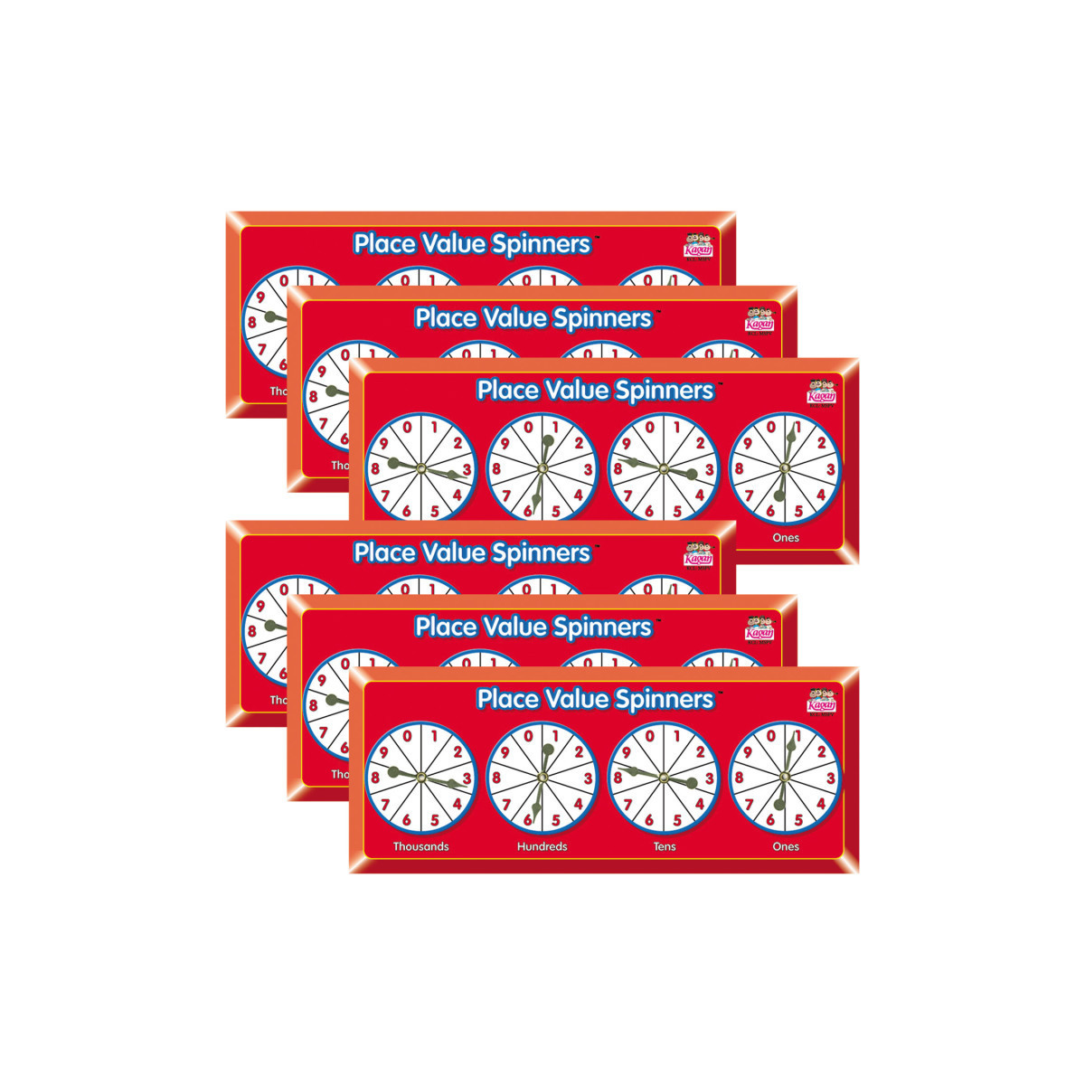 An entire number curriculum built into a spinner! Teach your students to recognize, write, and build numbers from 0 to 9,999. Start with the Ones spinner and watch your students work their way up to the Tens, Hundreds, then Thousands. Each new spin creates a new number for students to identify, write, or build with manipulatives. When your students are ready for decimals, just place a penny between spinners and suddenly you can teach decimal place value in tenths, hundredths, thousandths, and ten thousandths! Also works great to teach rounding off. Students spin a number and round it off to the nearest 0, 10, 100, or 1000. Multi-functional and multi-fun. Sold as a pack of 6 spinners.
