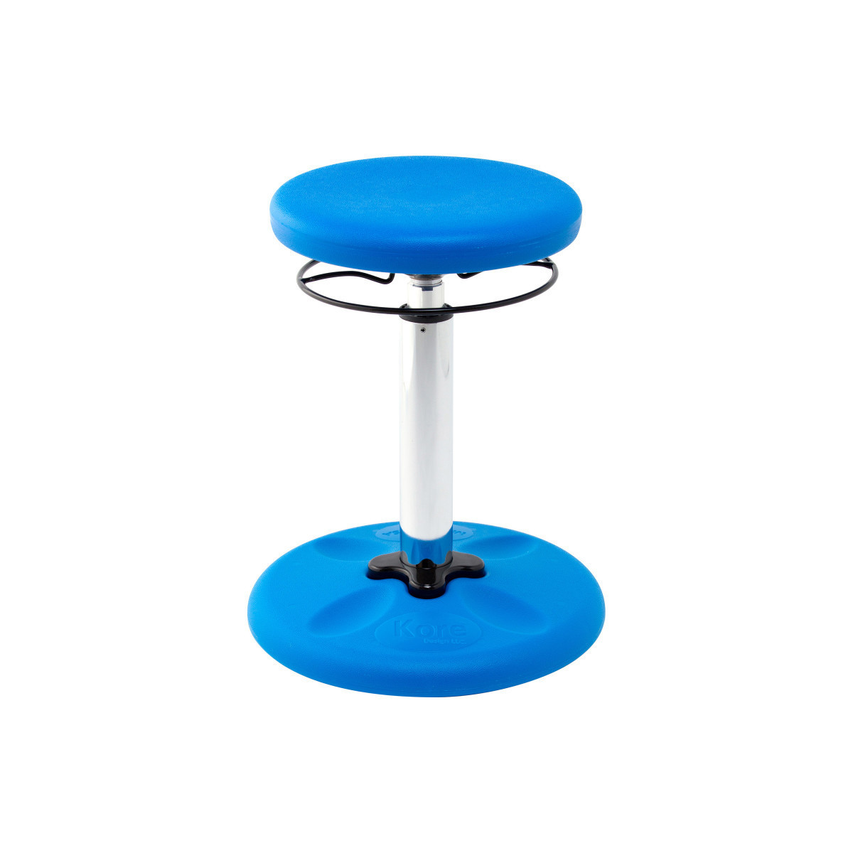 The innovative Kore Design® Kids Adjustable Wobble Chair with it's gently-rounded bottom encourages active sitting and allows one's knees, hips and back to find comfortable and ever-changing positions; continuous movement increases Secondary Focus. Great for older children and young teens, the seating height can be easily adjusted from 16.5" to 24" with the 360 degree Actuator Ring to grow with your child. Suggested for ages 9-14; Grade 4-9; child height 53"-70".