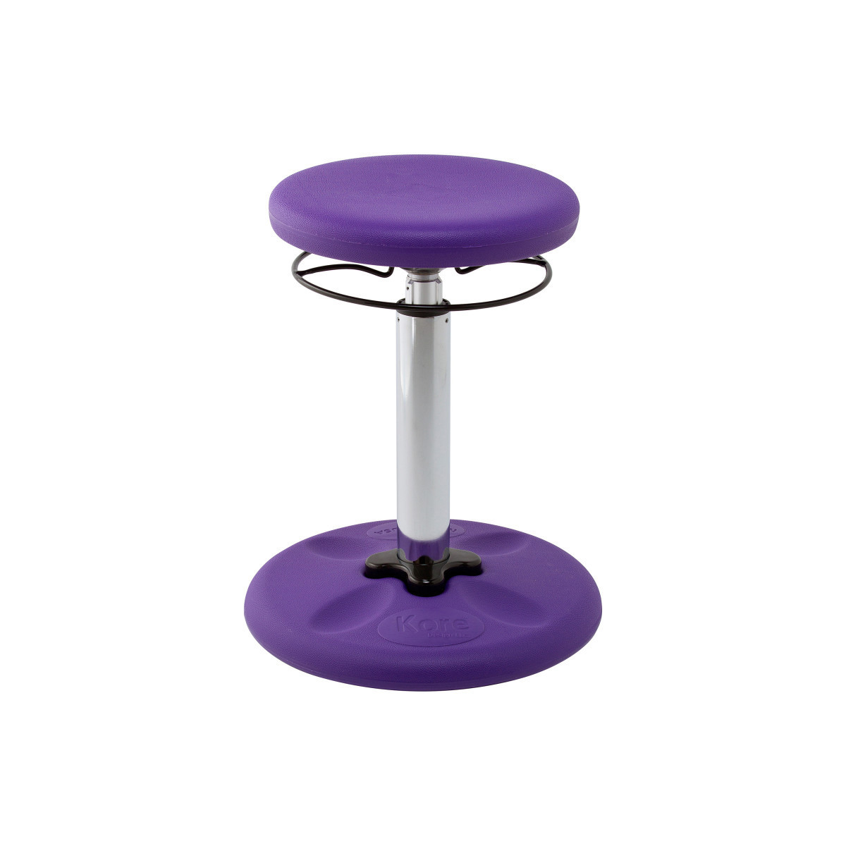 The innovative Kore Design® Kids Adjustable Wobble Chair with it's gently-rounded bottom encourages active sitting and allows one's knees, hips and back to find comfortable and ever-changing positions; continuous movement increases Secondary Focus. Great for older children and young teens, the seating height can be easily adjusted from 16.5" to 24" with the 360 degree Actuator Ring to grow with your child. Suggested for ages 9-14; Grade 4-9; child height 53"-70".
