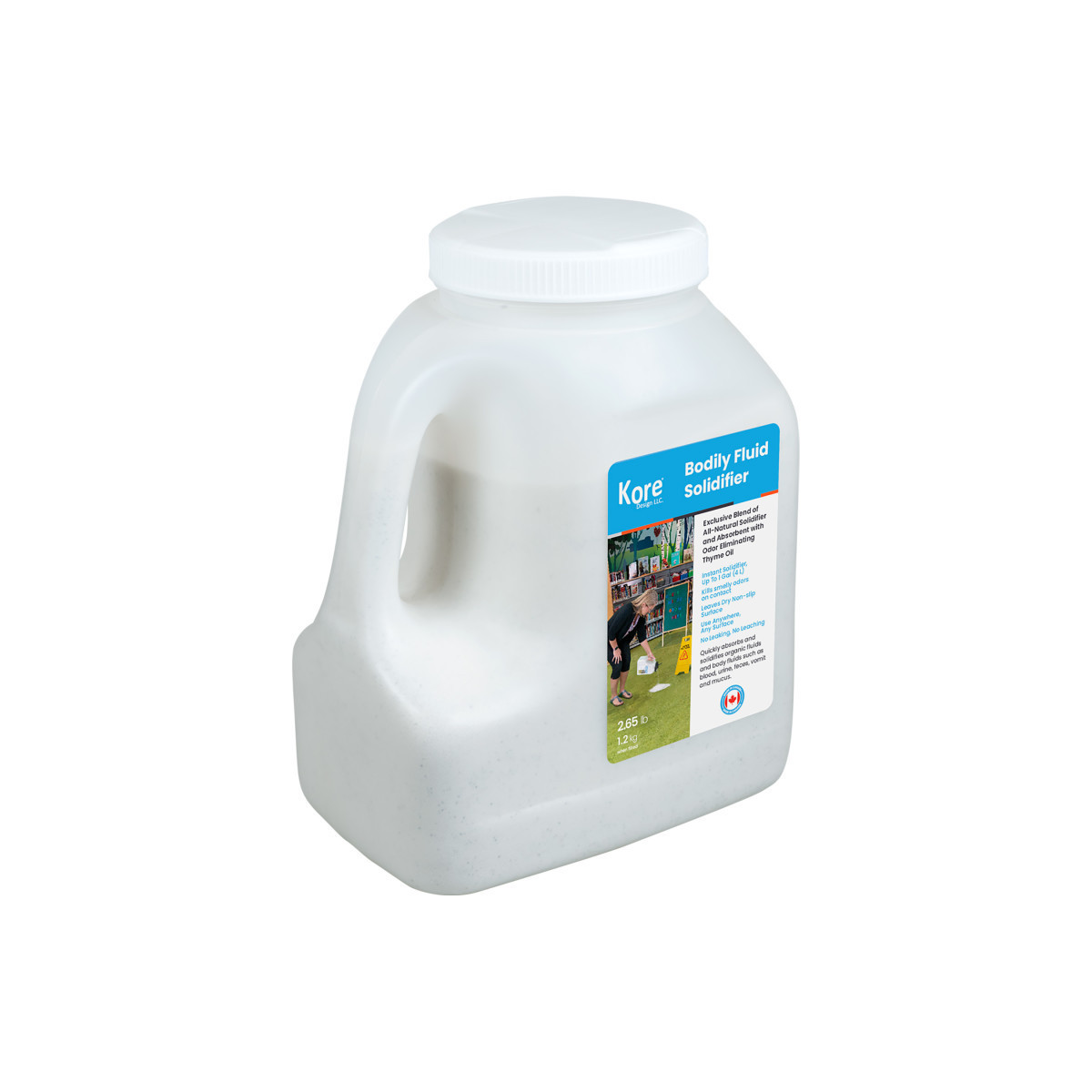 This unique granular solidifier quickly absorbs and solidifies body fluids and organic fluids such as blood, urine, vomit, feces and mucus and assists in the elimination of odor at the same time. Encapsulates fluids and eliminates odors on contact. Save time and money cleaning up organic fluid spills, splashes, or splatters. Includes (1) 4 Liter jug of solidifier.
