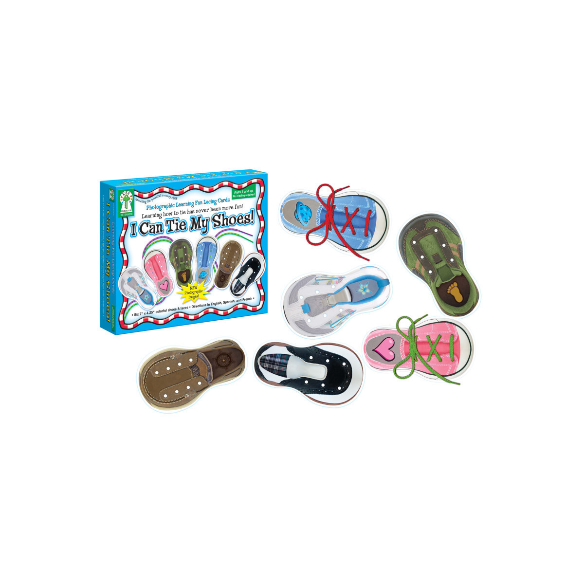 Improve fine motor skills and eye-hand coordination while learning to tie shoes! This fun game set includes 846 colorful shoes and boots (each 7" x 4.25"), 6 laces (each 36"), and directions in English, Spanish, and French. No reading is required. Key Education products are intended to engage and educate young and special learners, as well as assist teachers in building a strong and developmentally appropriate curriculum for these children. The product line—comprised of teacher/parent resource books, photographic learning cards, and other activity- and game-oriented materials—is designed to assist in "Unlocking the Potential in Every Child."