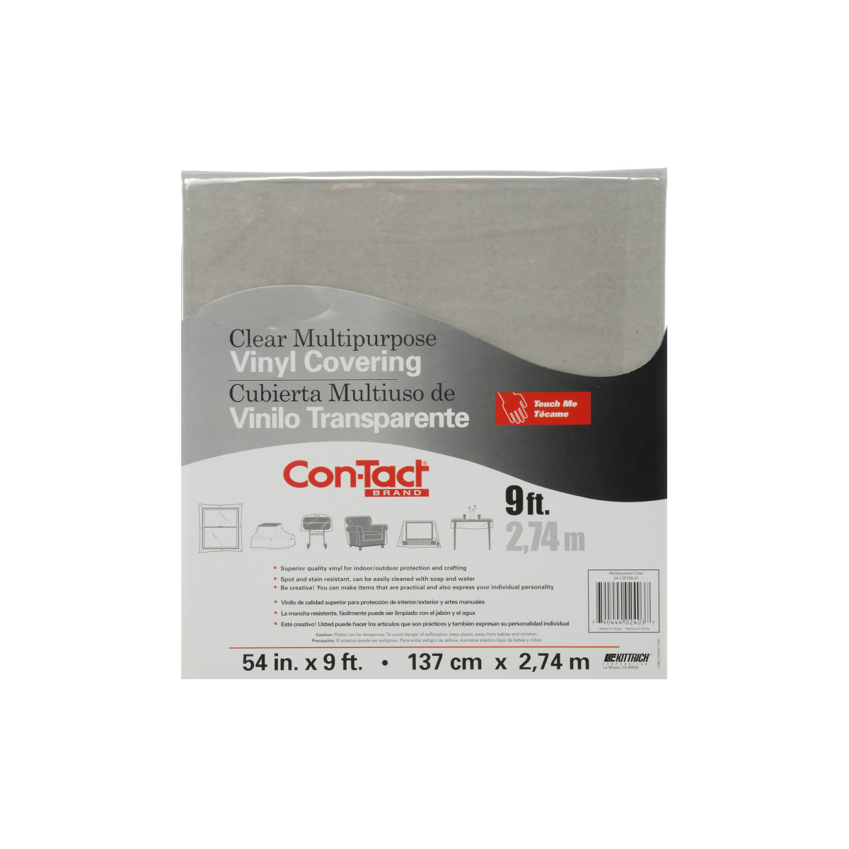 Folded pack of Clear Multipurpose Vinyl Covering. Use for Drop Cloth and many other covering applications. Indoor/outdoor protection. Spot and stain resistant. Measures 54" x 9'.