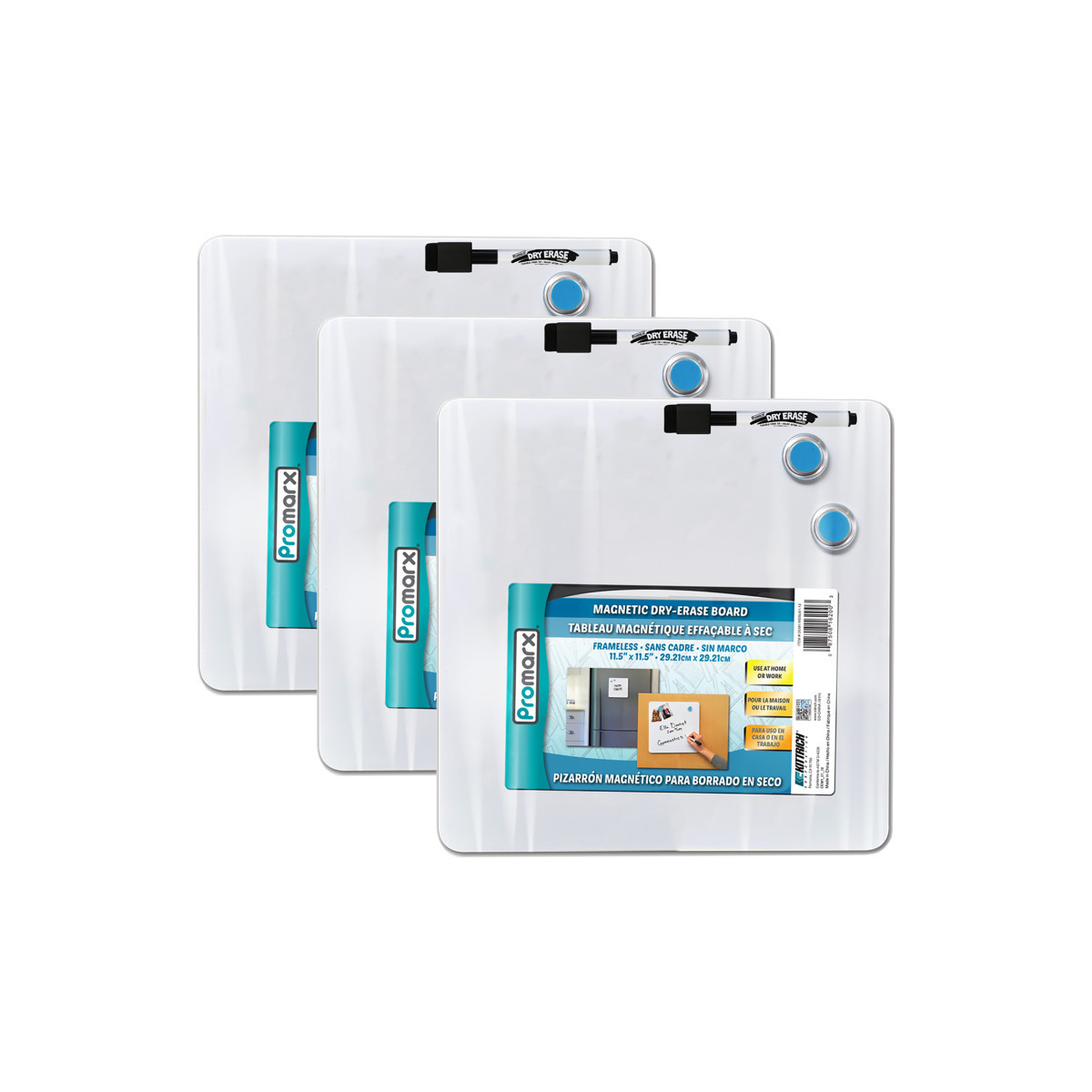 Sold as a pack of 3 boards, each board includes 2 magnets and 1 black marker with built-in eraser