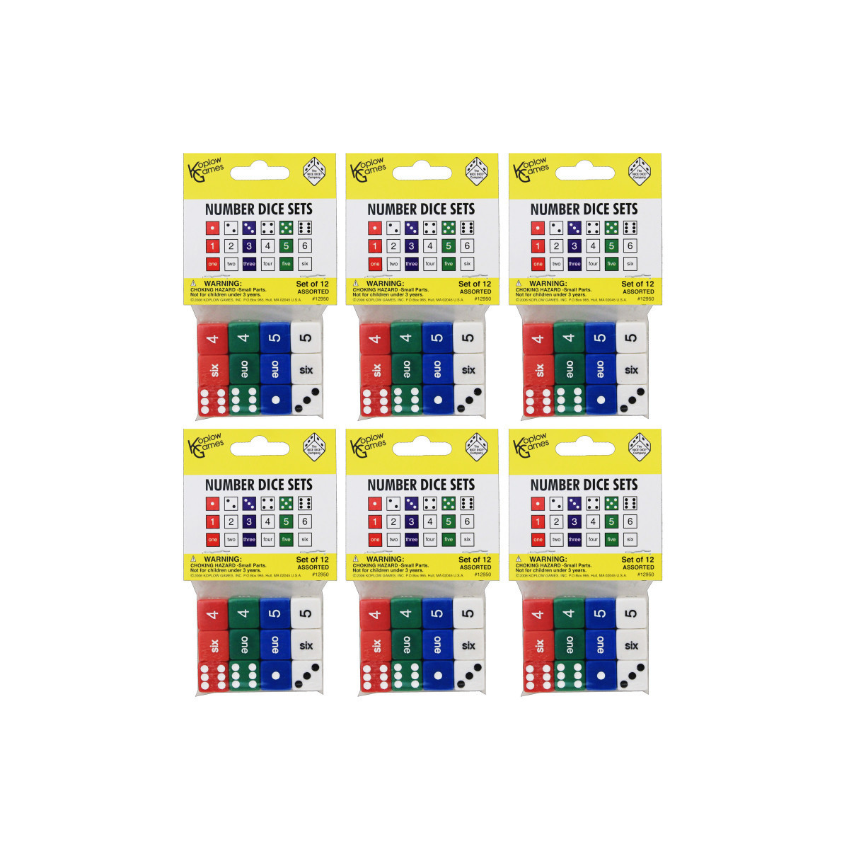 Koplow Games Number Dice Set is great for games and classroom activities, enhance reading skills and show the relationship between pictorial, symbolic, and vocable. Hundreds of counting, sorting and math applications. A hands on way to practice basic math skills. Each pack includes 12 dice. Sold as 6 packs for a total of 72 dice.