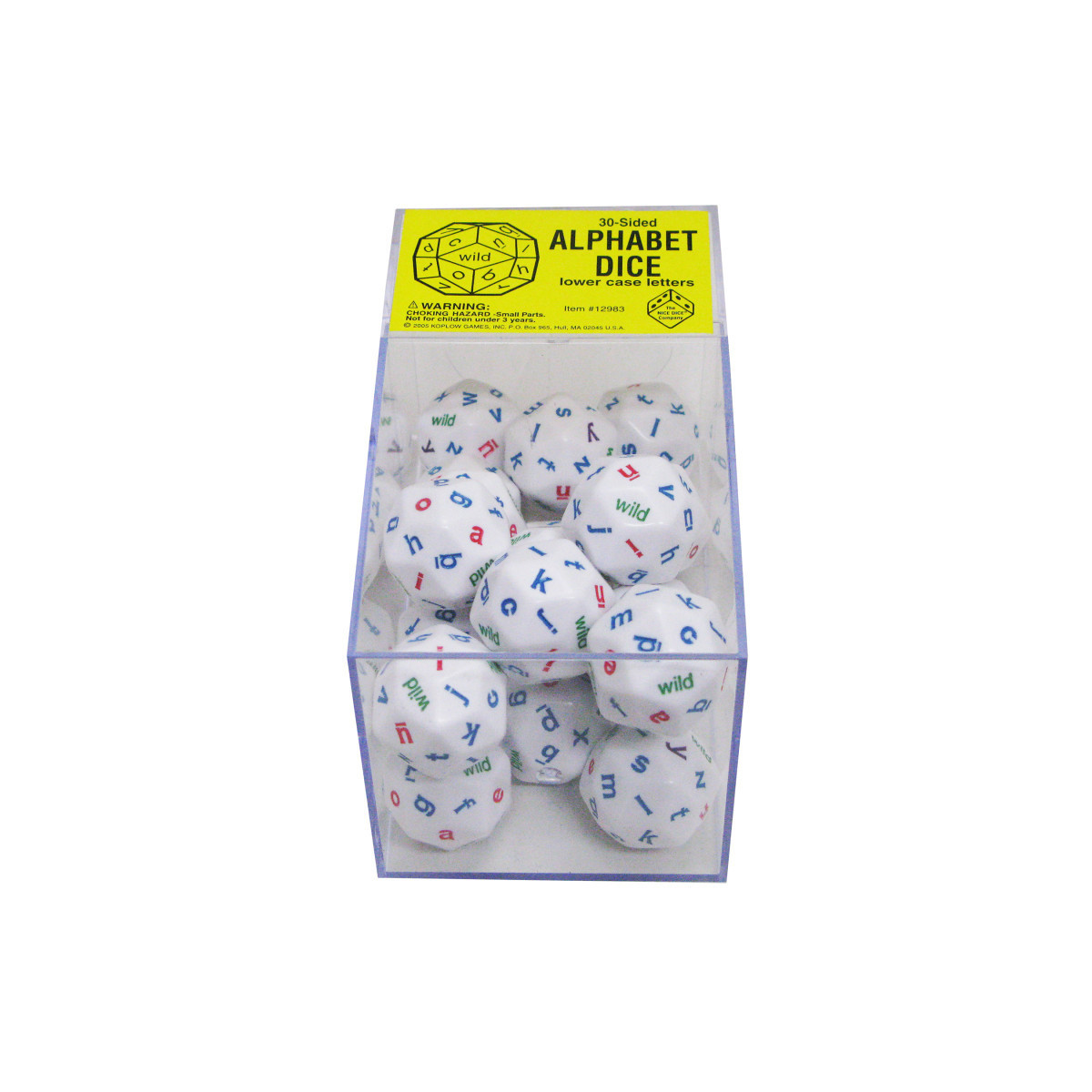 These dice have various uses depending on age. These oversized trial 30-sided dice can teach younger children their letters, or older children can use the dice to make words. Each box includes 20 dice.