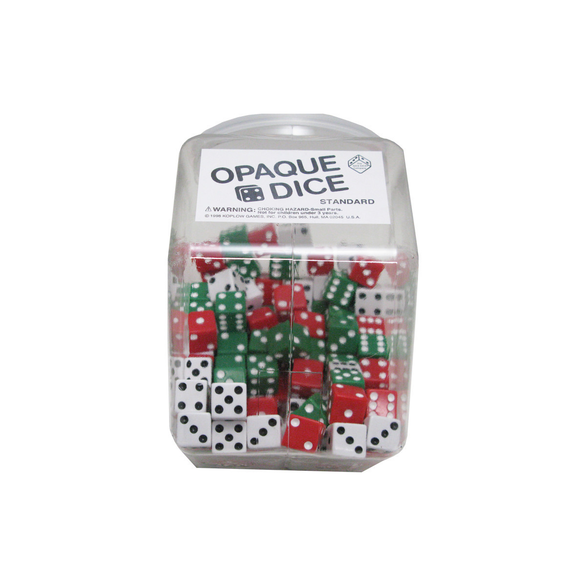 144 assorted 5/8" standard six sided dice with spots assorted 3 colors.