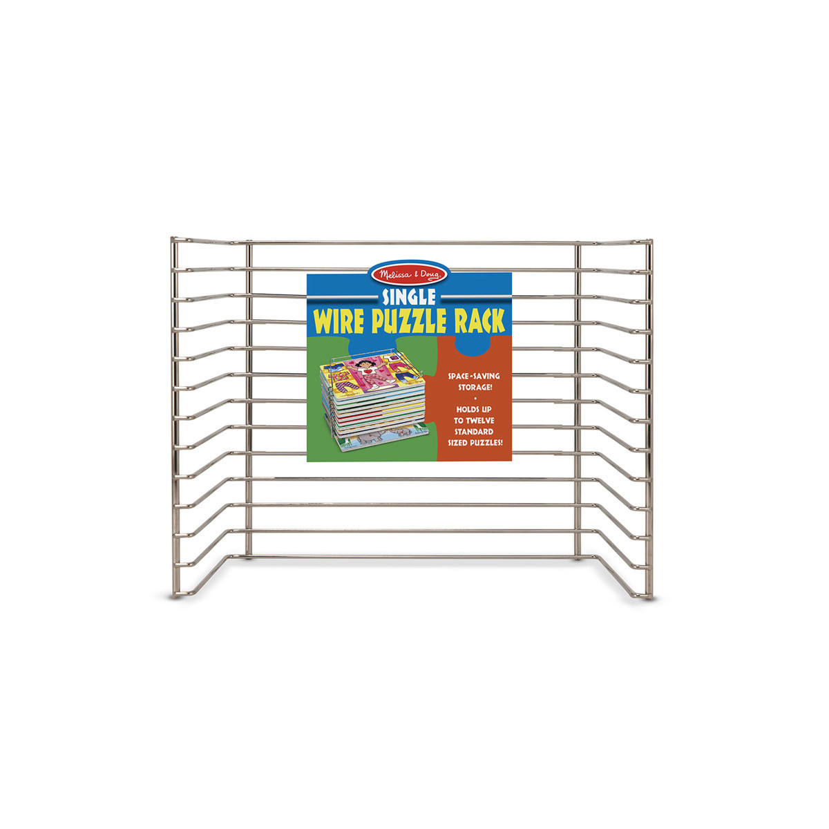 Rack holds Melissa & Doug Peg Puzzles and other 8.5 x 11.5 x 0.5-inch puzzles; rack does not hold Melissa & Doug Chunky Puzzles, Jumbo Knob Puzzles, Sound Puzzles, Latches Board or other large activity boards