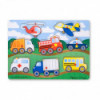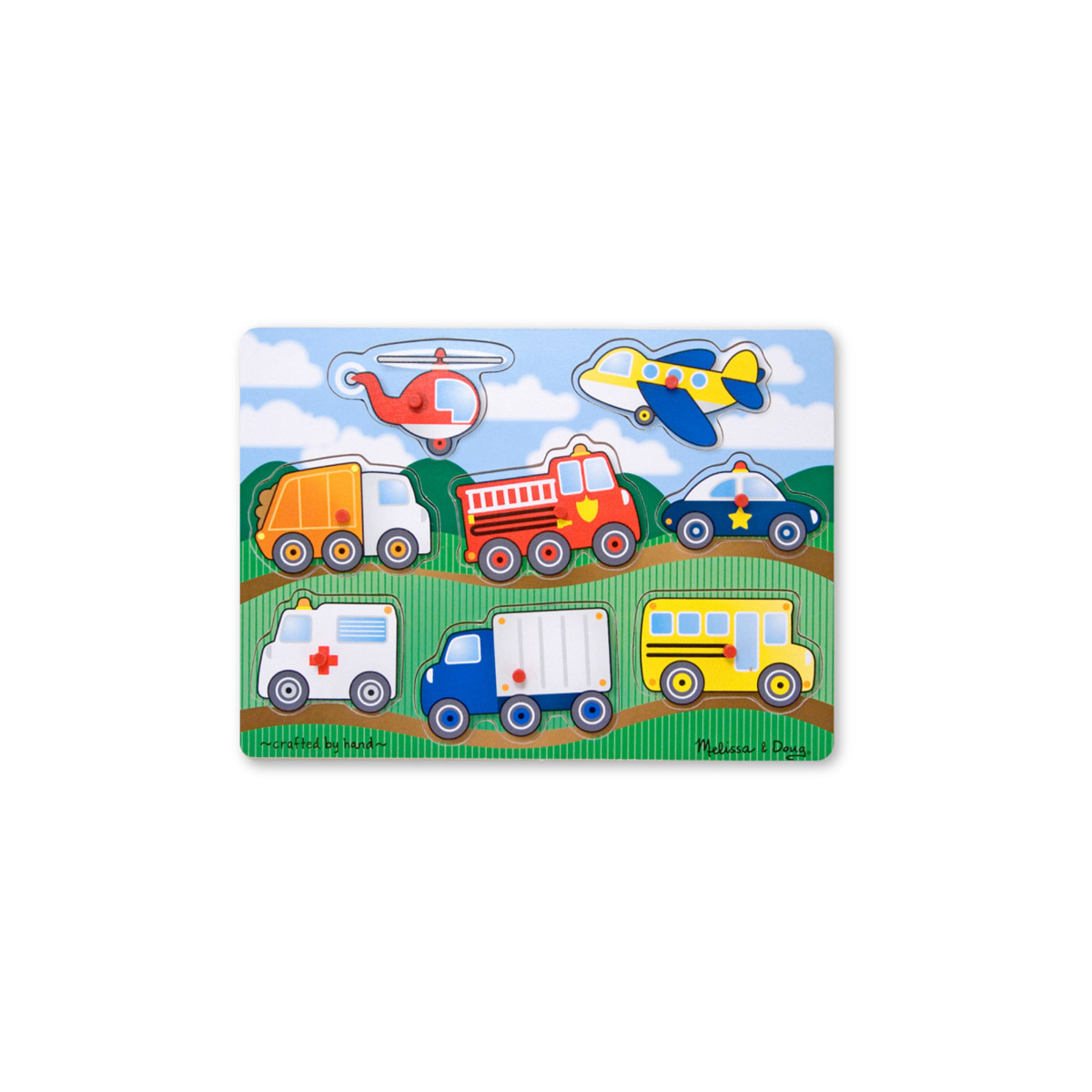 Go, go, go in your choice of vehicle with this colorful 8-piece wooden puzzle! The bright colors will catch your child's interest, and the pictures under the pieces and easy-grasp pegs will help to solve the puzzle. A great way to practice hand-eye coordination, fine motor skills, memory skills and more. Product measures 8.75" x 11.75" x 0.75".