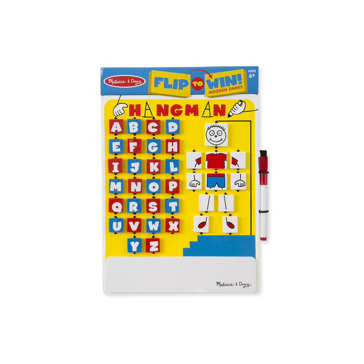 A classic word game with a twist! Kids will love thinking up words to stump their opponent, or taking their best guess to win it all! Includes one Hangman game board with erasable whiteboard, self-storing dry-erase marker and eraser. No loose pieces - ideal for travel!