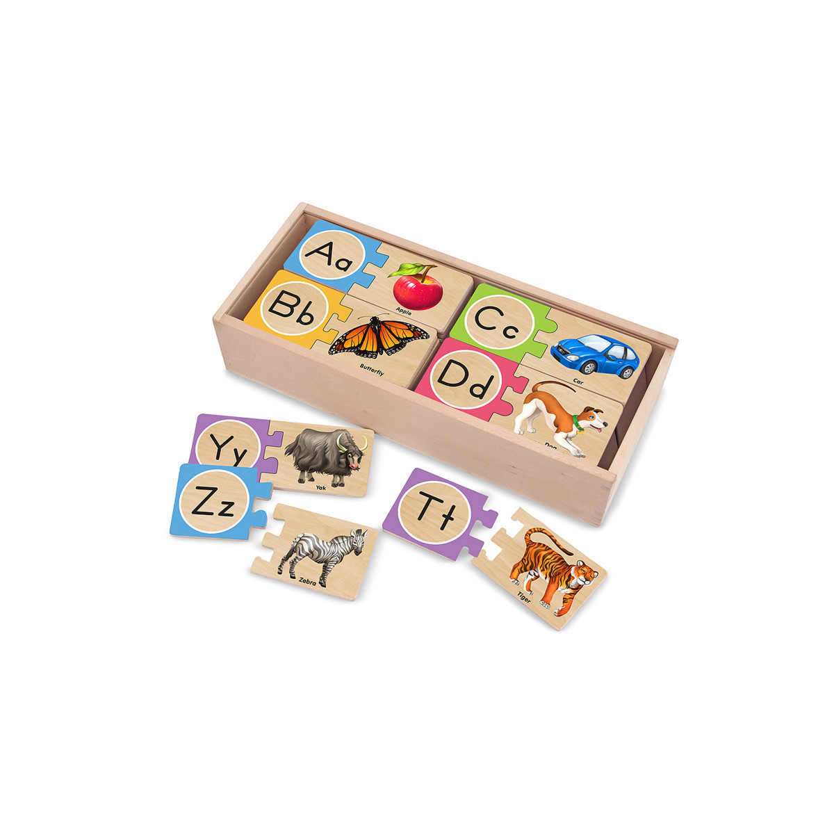 Match these wooden puzzle pairs to make mastering letters and their sounds as easy as A, B, C. The puzzles are self-correcting--each piece has only one match that fits--so children can play independently and learn at the same time.