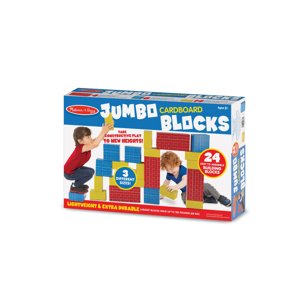 Very young builders will love these sturdy, cardboard building blocks because they are lightweight yet durable! This 24-piece set features three sizes of "bricks" for constructive imaginative play. Made of premium, extra-thick cardboard for strength, they are easy to assemble and feature a wipe-clean surface. The red blocks hold up to 150 lbs!