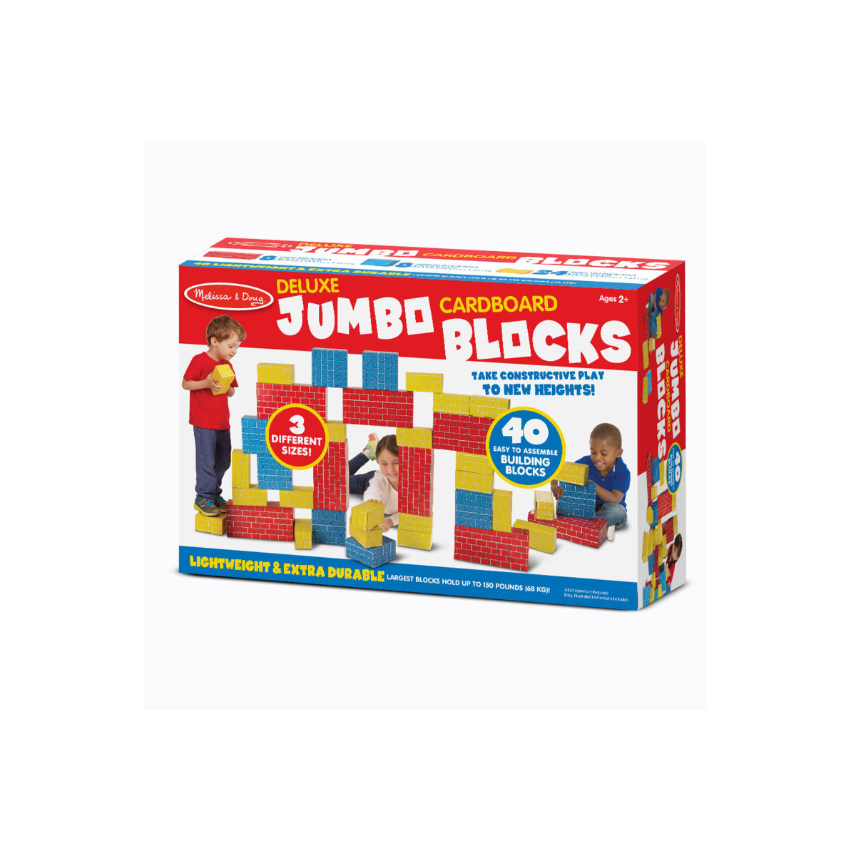 • Made of premium, extra-thick cardboard - red blocks hold up to 150 pounds!