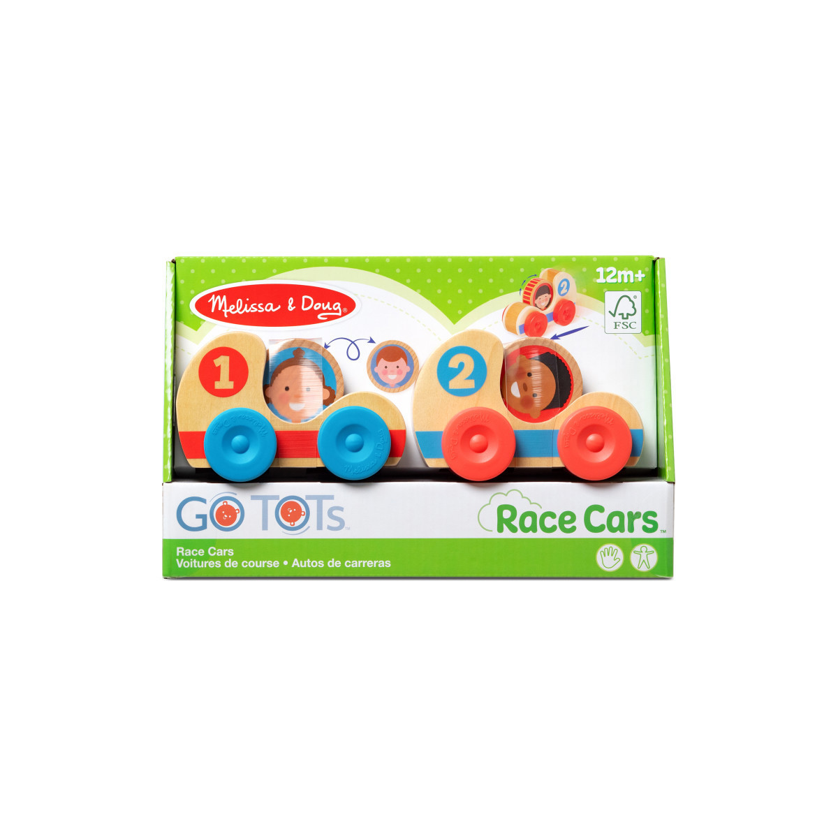 Let's go play with friends that are fun to roll, stack, and grasp! Drop the two double-sided chunky wooden GO Tots disks (4 collectible characters) into the numbered wooden race cars, and push the cars to make the GO Tots spin! Numbers and colors on the cars inspire counting, sorting, matching, and color recognition games. Compatible with other GO Tots play sets. With Melissa & Doug GO Tots, toddlers 12 months and older will discover a new kind of kinetic play that offers opportunities to explore cause-and-effect through delightful motion-driven moments. Relatable, diverse characters and appealing shapes and textures encourage connections and exploratory, skill-building play. As part of Melissa & Doug's commitment to helping protect and preserve our planet's natural resources for our children's future