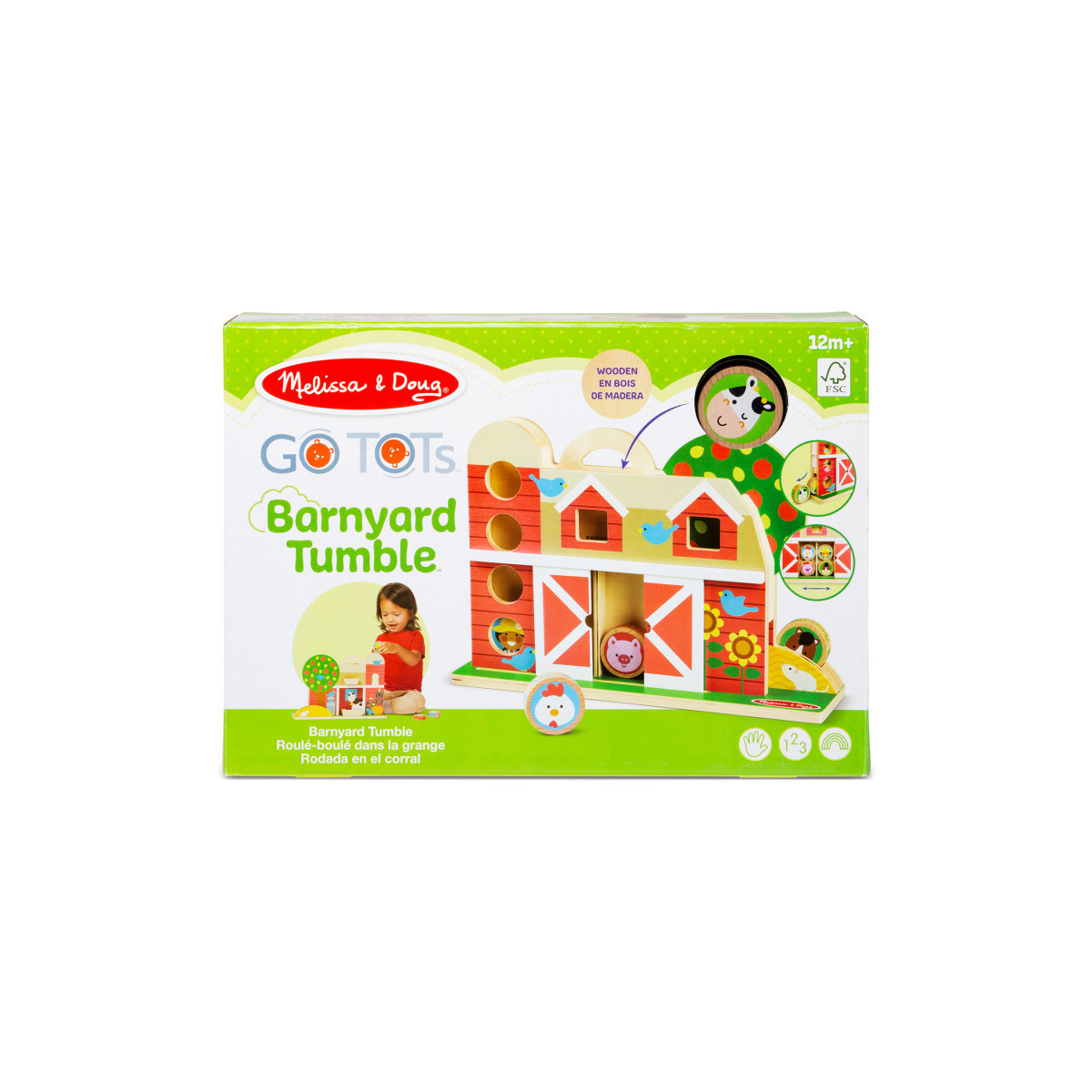 - Roll, stack, and grasp 4 double-sided wooden GO Tots friends and make them tumble, twirl in the wooden double-sided barn with built-in carrying handle