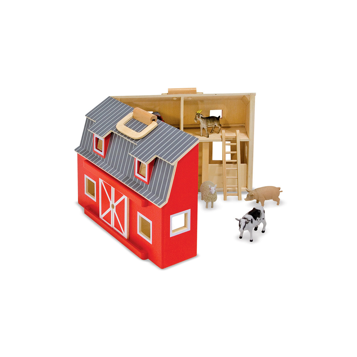 - Melissa & Doug Fold and Go Wooden Barn With 7 Animal Play Figures