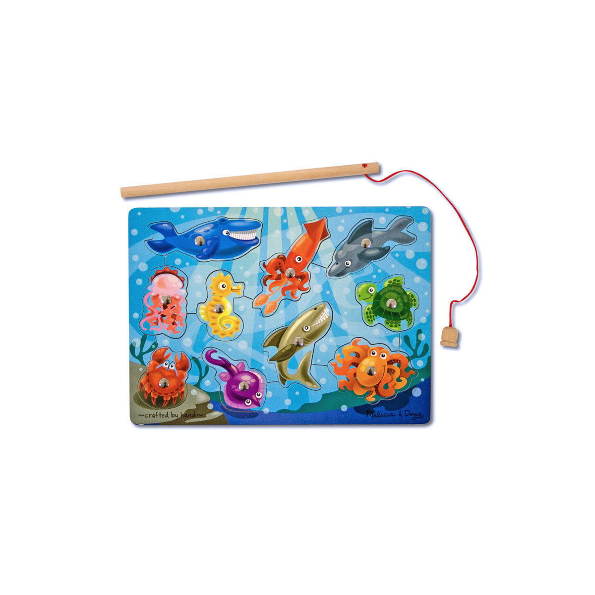 The ultimate catch and release fishing program, this magnetic wooden puzzle game features aquatic animal artwork