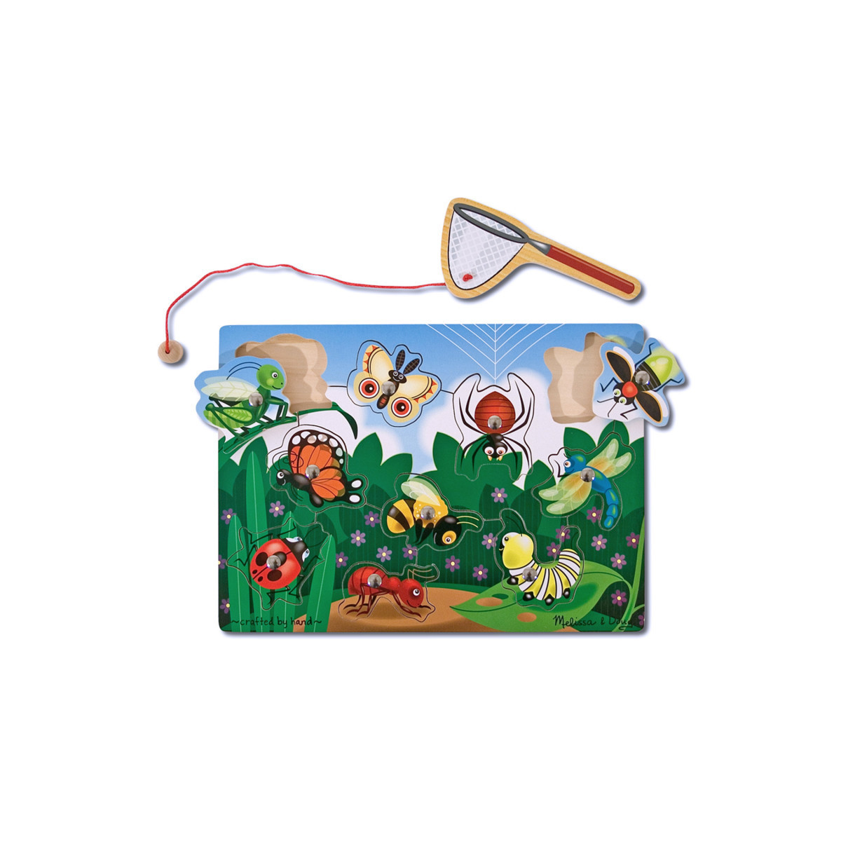 This magnetic wooden puzzle game features bugs and insects in a garden. Use the magnetic butterfly net to "capture" the ten, bug buddies from the game board. Then, enjoy the challenge of returning them to their preferred perch! A creative way to encourage eye-hand and fine motor development.