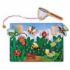 This magnetic wooden puzzle game features bugs and insects in a garden