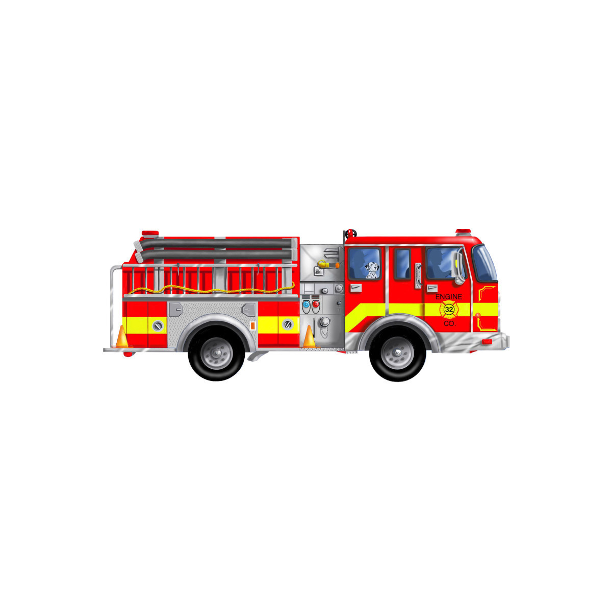 This fire truck-shaped puzzle is ready to go with only 24 cardboard pieces to complete assembly! Four feet long when assembled, the extra-thick cardboard pieces feature an Easy-Clean surface to keep them looking like new. Product: 12" H x 9.5" W x 3" L 2.3 lbs.: Package: 48"L x 18"W Assembled 2.6 lbs.