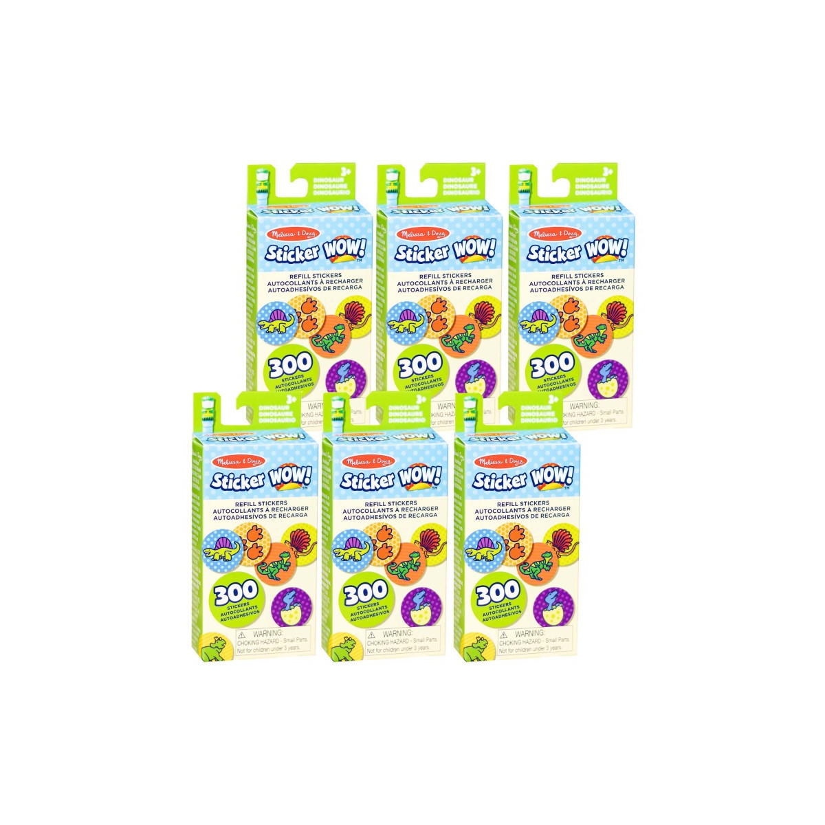 Melissa & Doug Sticker WOW!™ is a whole new way to play with stickers! Pop each of the convenient sticker stacks of 300 assorted Dinosaur prehistoric-themed stickers into any Sticker WOW!™ Sticker Stamper cartridge, and stamp away, anywhere, anytime! With 100 unique designs in every sticker stack, each sticker stamped is a surprise. Sticker WOW!™ Refill Stickers are easy to remove and are great for creative arts and crafts projects. Dinosaur Refill Stickers are a natural complement to the Sticker WOW!™ Olive the Dinosaur sticker stamper, but they are compatible with all the cute and collectible Sticker WOW!™ sticker stampers (sticker stamper not included). Sticker WOW!™ (patent pending) promotes fine motor skills, encourages creative play, and it's satisfying, fidget fun! Sold as 6 refill packs for a total of 1800 stickers.
