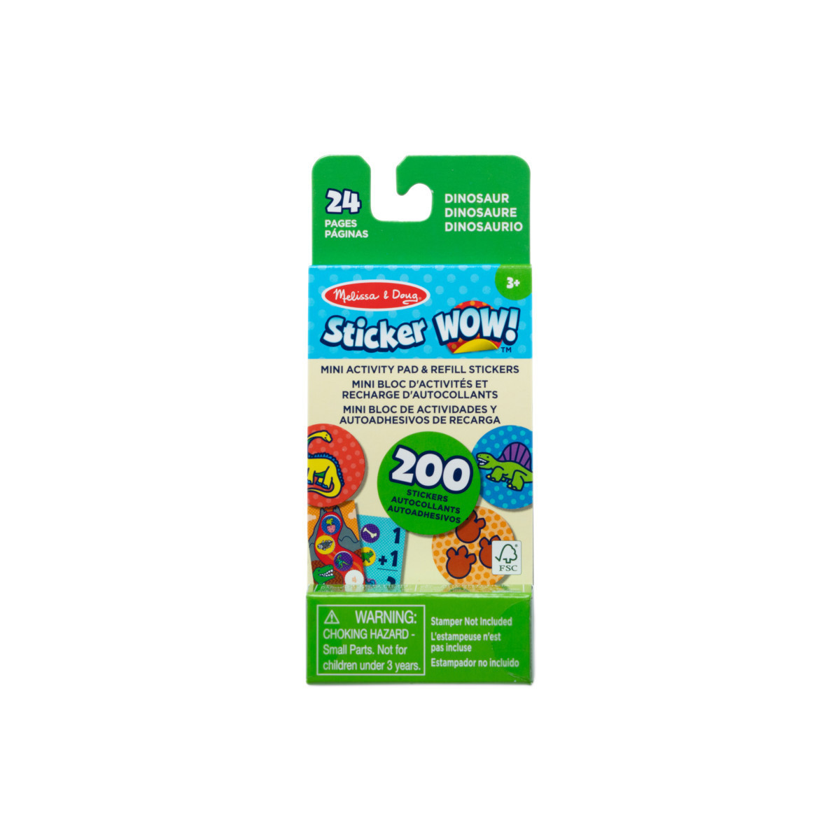 - Refill any Melissa & Doug Sticker WOW!™ sticker stamper (not included) with 200 assorted dinosaur-themed refill stickers, and stamp, stamp, stamp, anywhere, anytime
