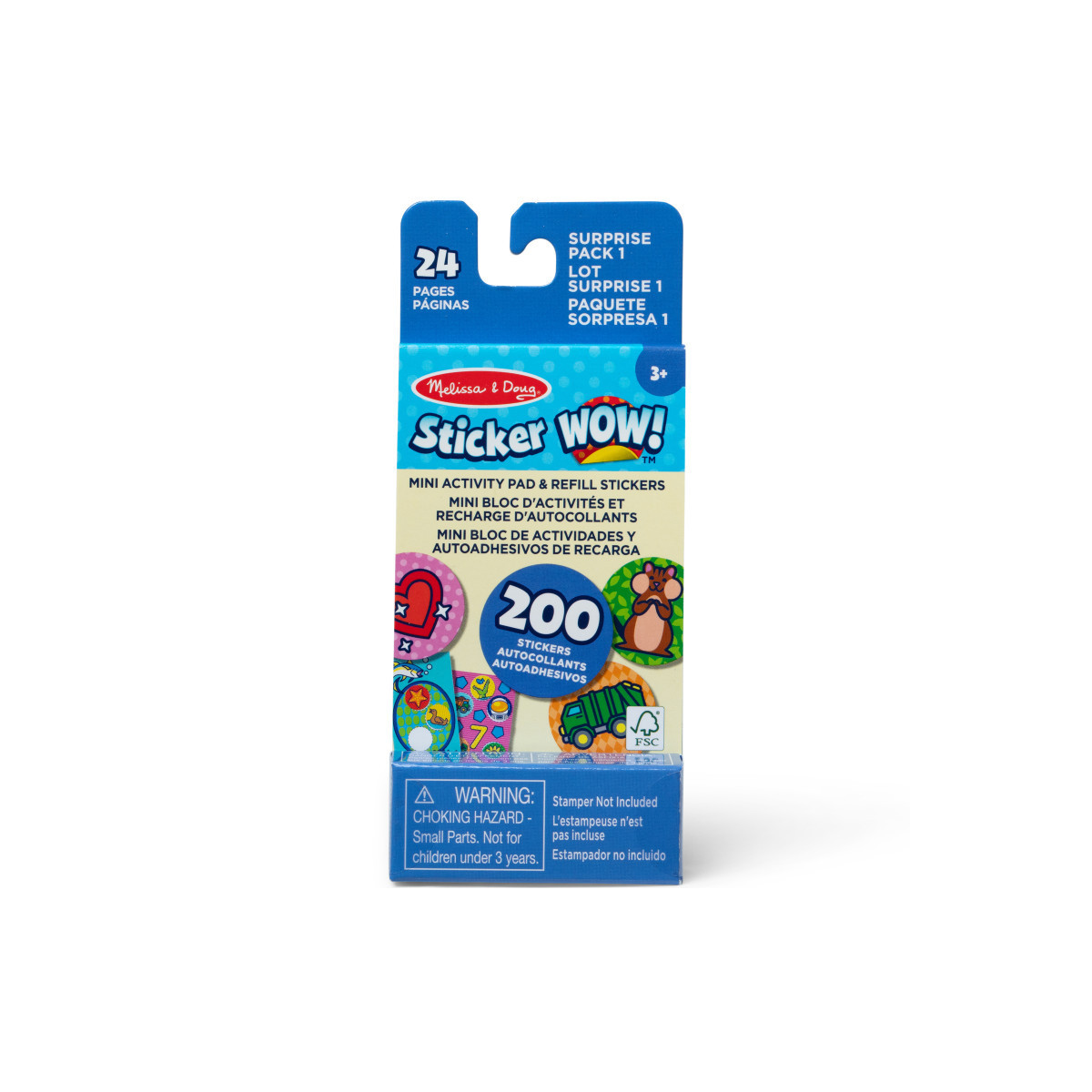Melissa & Doug Sticker WOW!™ is a whole new way to play with stickers! Pop the convenient sticker stack of 200 assorted Surprise Pack stickers into any Sticker WOW!™ Sticker Stamper cartridge, and stamp, stamp, stamp, through 24 mini pages (approximately 2.25 in. by 4.25 in.) of fun-filled counting and matching activities. With 100 unique designs in the sticker stack, each sticker stamped is a surprise. Sticker WOW!™ refill stickers are not reusable but are easy to remove if necessary and are great for creative arts and crafts projects. Surprise Pack 1 Refill Stickers are compatible with all the cute and collectible Sticker WOW!™ sticker stampers (sticker stamper not included). Sticker WOW!™ (patent pending) promotes fine motor skills, encourages creative play, and it's satisfying, fidget fun!