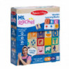 Stack, roll, match, and learn with Melissa & Doug® Ms. Rachel™ Wooden Learning Blocks! Inspired by Ms. Rachel's popular baby and toddler videos, this blocks and activity cards set is made with love to support learning for littles, and is packed in a sturdy box, for on-the-go play and easy cleanup. Stimulate cognitive development with 26 blocks that help kids identify letters, numbers, pictures, and colors. Encourage language skills, turn-taking, and social skills with four game blocks, featuring animals, body parts, emotions, and movements, along with 14 double-sided activity cards for matching, counting, play ideas, developmental skill information and tips. Block play is great for boosting fine motor skills and self-esteem, as little hands grasp, build, and play. These Melissa & Doug toys are toddler learning toys, designed by Ms. Rachel and developmental experts to support all children through their ages and stages, from 18 months to 3+ years. Ms. Rachel toys are ideal newborn toys, toddler toys, preschool toys, Montessori toys, and toys for ages 2-4. From baby shower gifts to baby essentials, these products help babies and families learn, bond, and thrive. Ms. Rachel is a real teacher with two master's degrees in education. She is passionate about creating research-based videos and products to educate families and support learning for littles. This product is certified by the Forest Stewardship Council. FSC certification ensures that products come from responsibly managed forests that provide environmental, social, and economic benefits, and that forests are protected for future generations. Please note that FSC certification applies to new inventory only (FSC C156584).