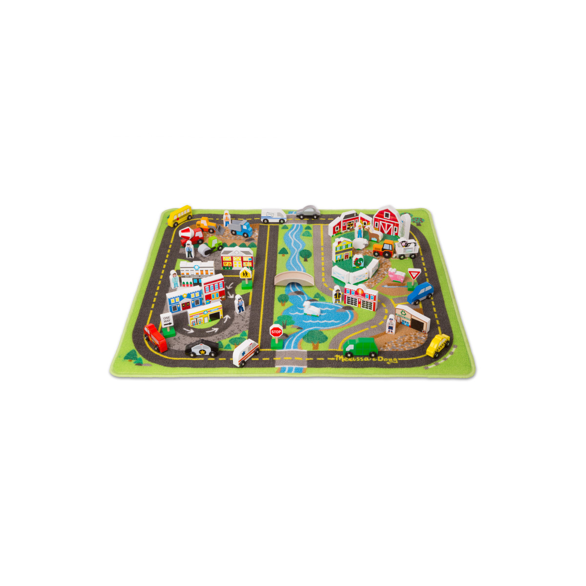 - Activity rug and with both Town and country scenes and 49 wooden play pieces