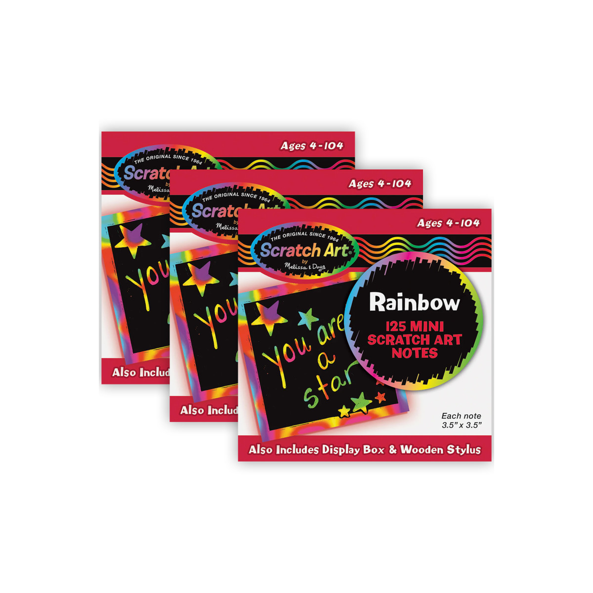 Creative kids can jot notes, etch doodles and make exciting mini masterpieces with Mini Scratch Art Notes. This handsome display contains 24 items, each including 125 Rainbow Mini Notes, a wooden stylus and a reusable "desktop dispenser" box to hold it all. Sold as 3 packs, for a total of 375 notes.