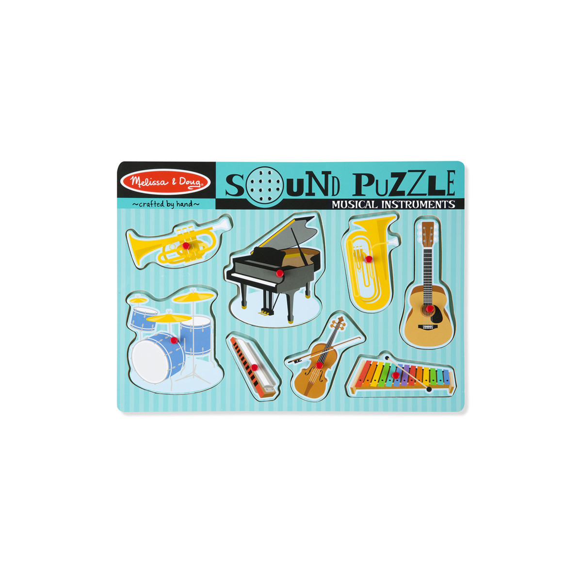 Eight instruments are ready for an aspiring conductor. Place an instrument piece correctly in the puzzle board and listen to the instrument play. Remove each piece to discover the identity of each of the instruments.