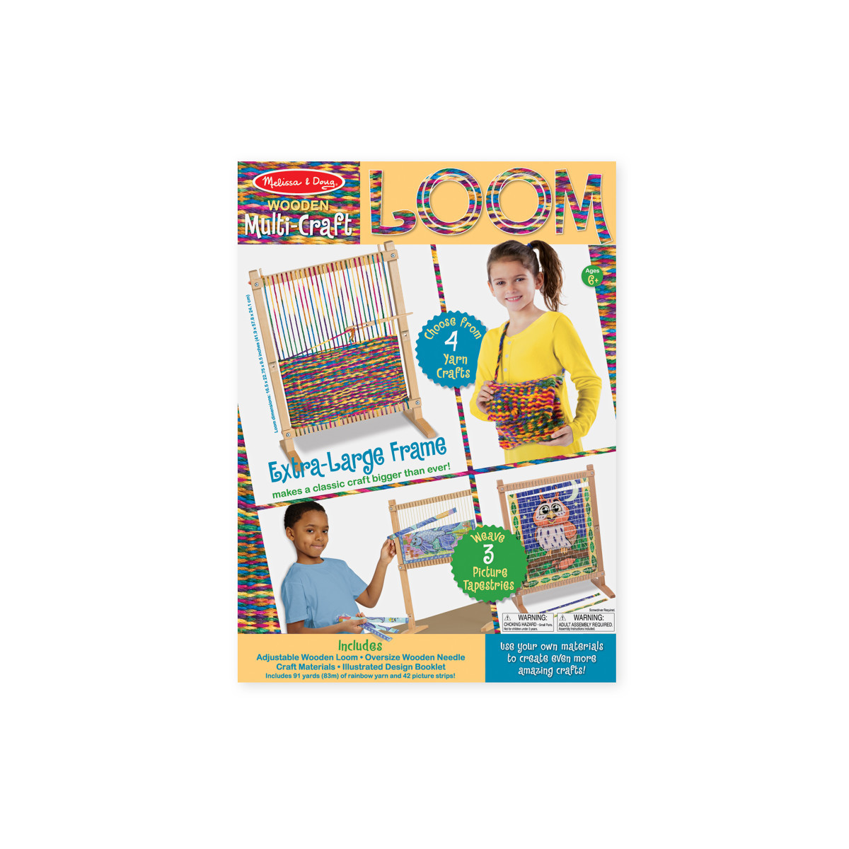 Youngsters will be thrilled to get creating with this Multi-Craft Weaving Loom. With its easy-to-use adjustable frame, oversize wooden needle, and generous 91 yards of rainbow yarn, kids can choose to make a scarf, a tasseled coaster, a drawstring pouch, a crafty carry-all-or whatever they design themselves! Great for all skill levels, this Loom also includes three picture tapestries to weave. Includes adjustable wooden loom, oversize wooden needle, craft materials, illustrated design booklet, 91 yards (83 m) of rainbow yarn, and 42 picture strips.