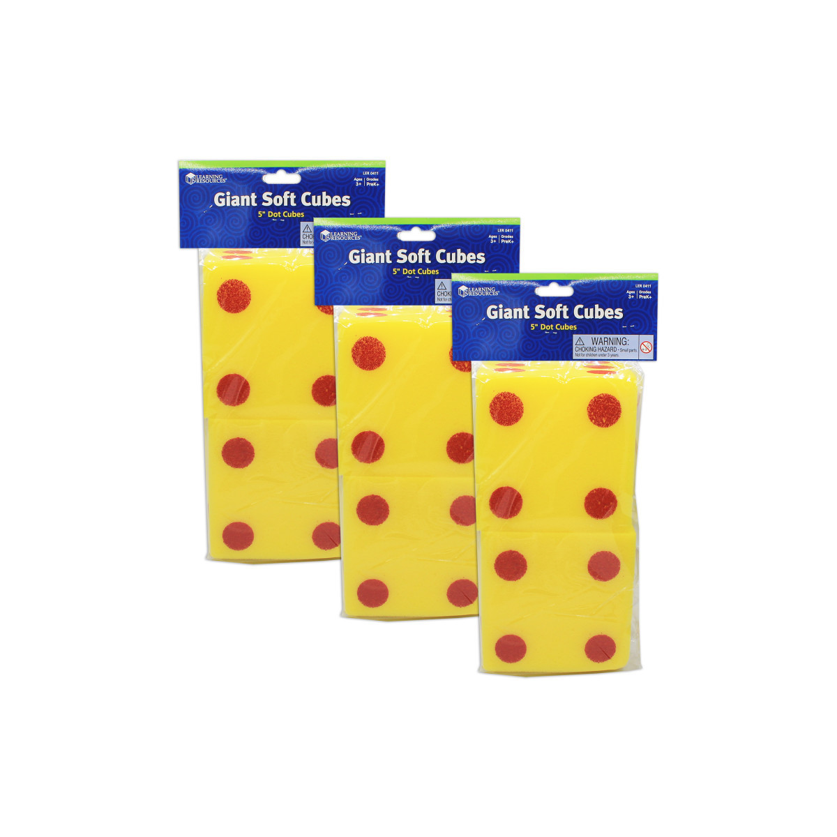 Giant sized way to roll some fun into math activities and games at home. Set includes two soft foam dot cubes. Each cube measures 5" square. Each pack contains 2 dice. Sold as 3 packs for a total of 6 dice.